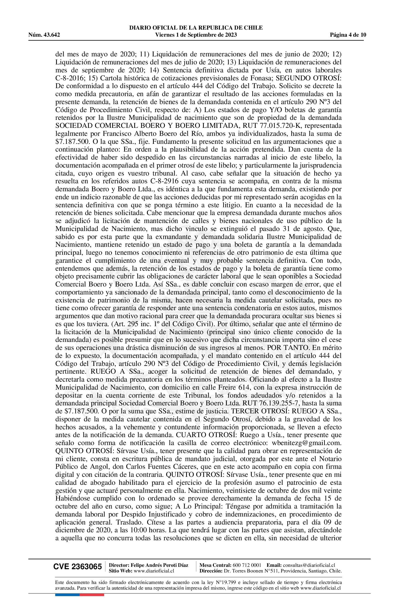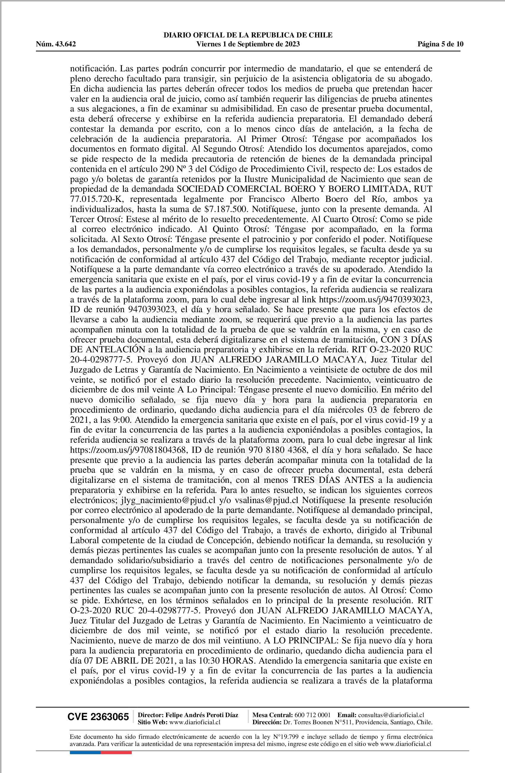 | Fuente: | Diario Oficial Edición Electrónica (Diario Oficial de Chile - 3 Public. Judiciales) | Página(s): | 858-867 |