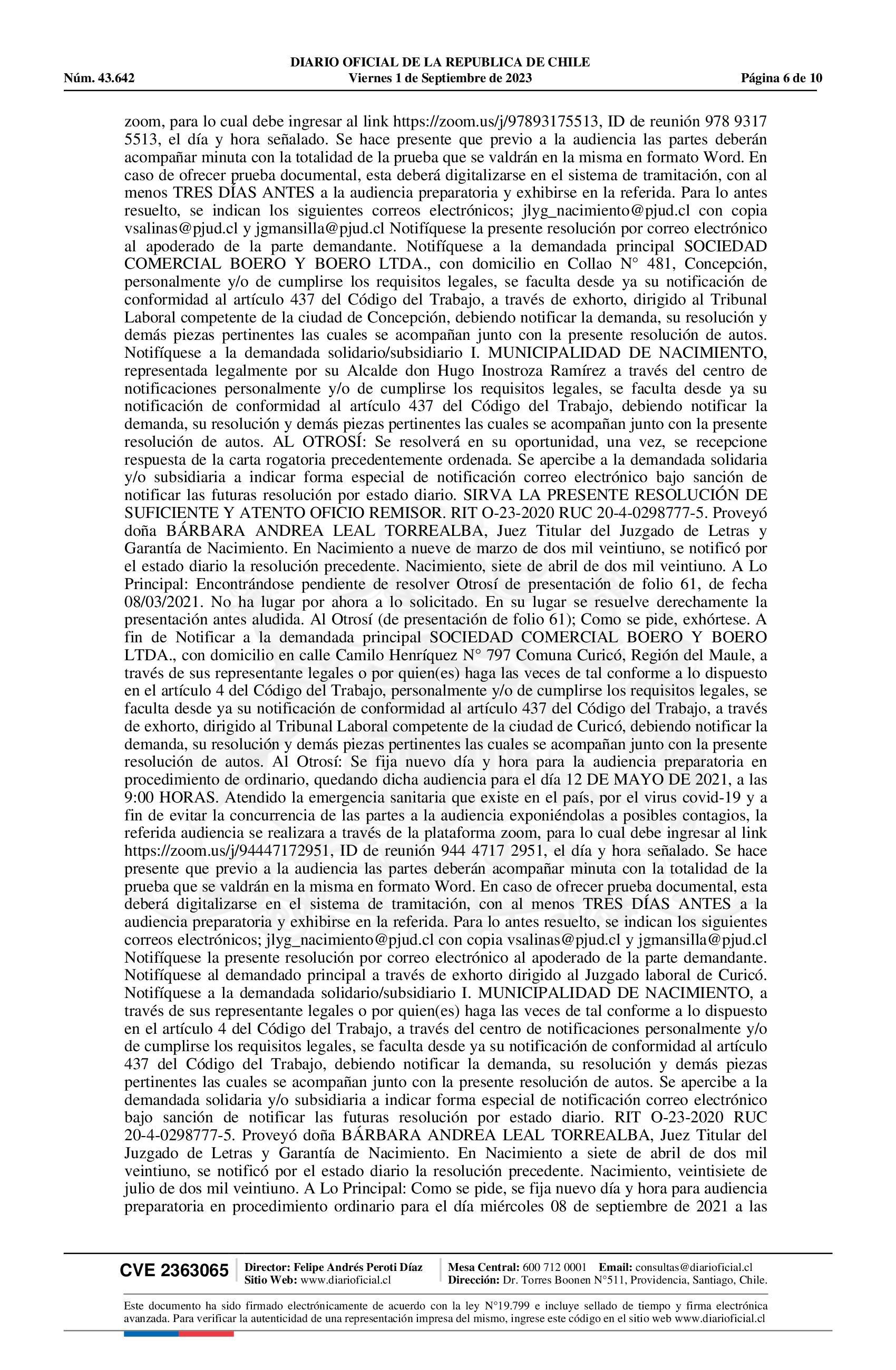 Notificación 01-09-2023 Diario Oficial Edición Electrónica |