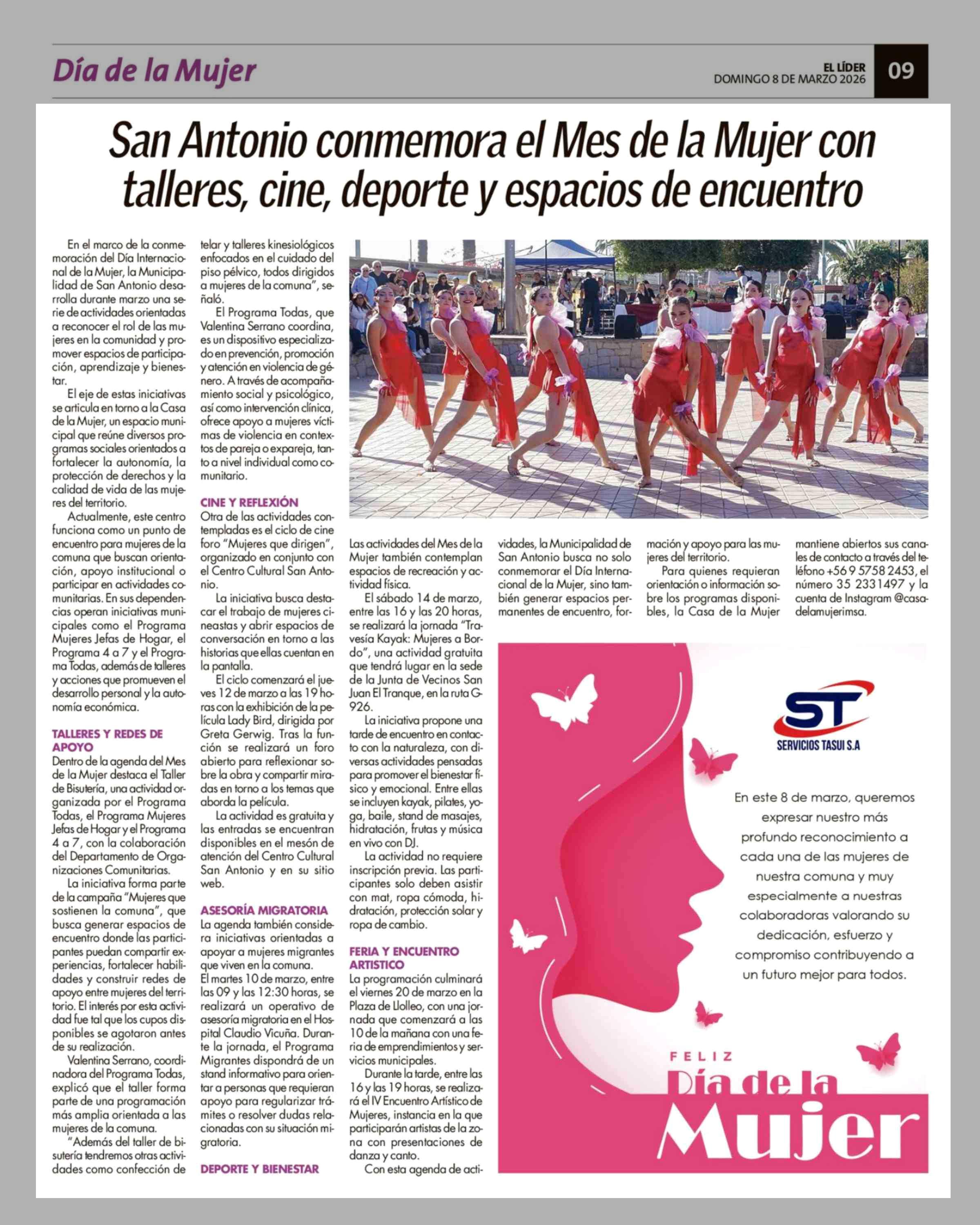 Título: San Antonio conmemora el Mes de la Mujer con talleres, cine, deporte y espacios de encuentro