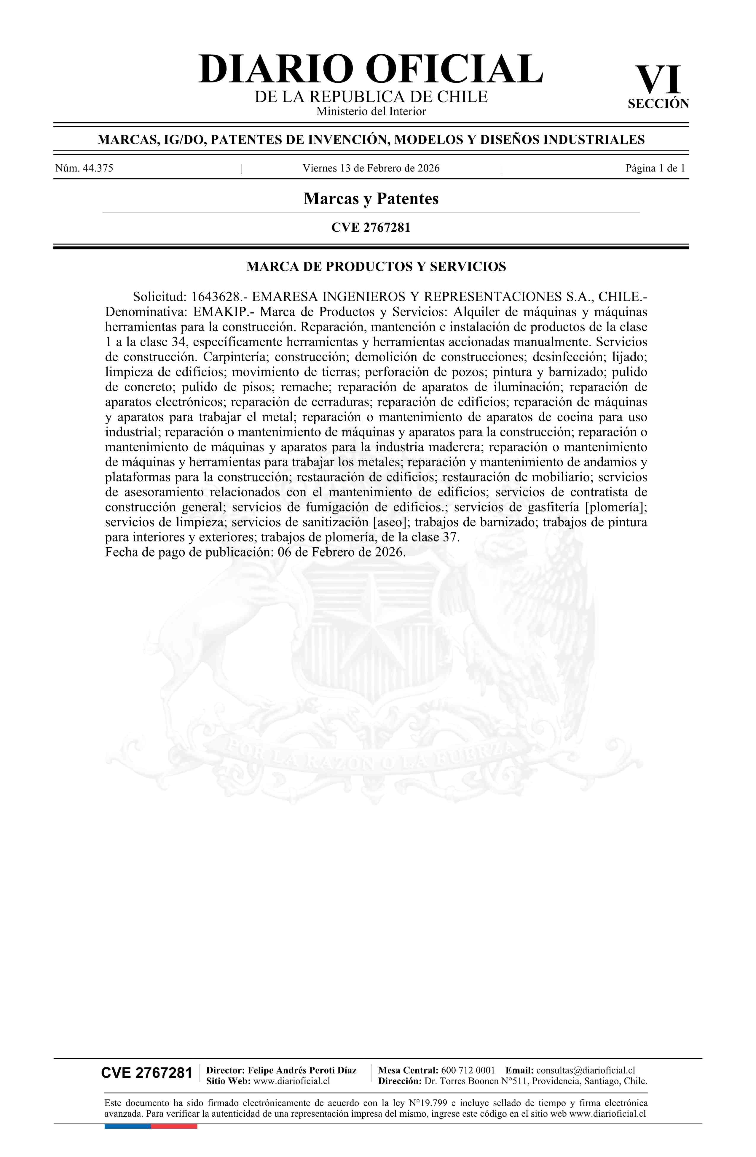 Solicitud número 1643628.- EMAKIP 13-02-2026 Diario Oficial Edición Electrónica |