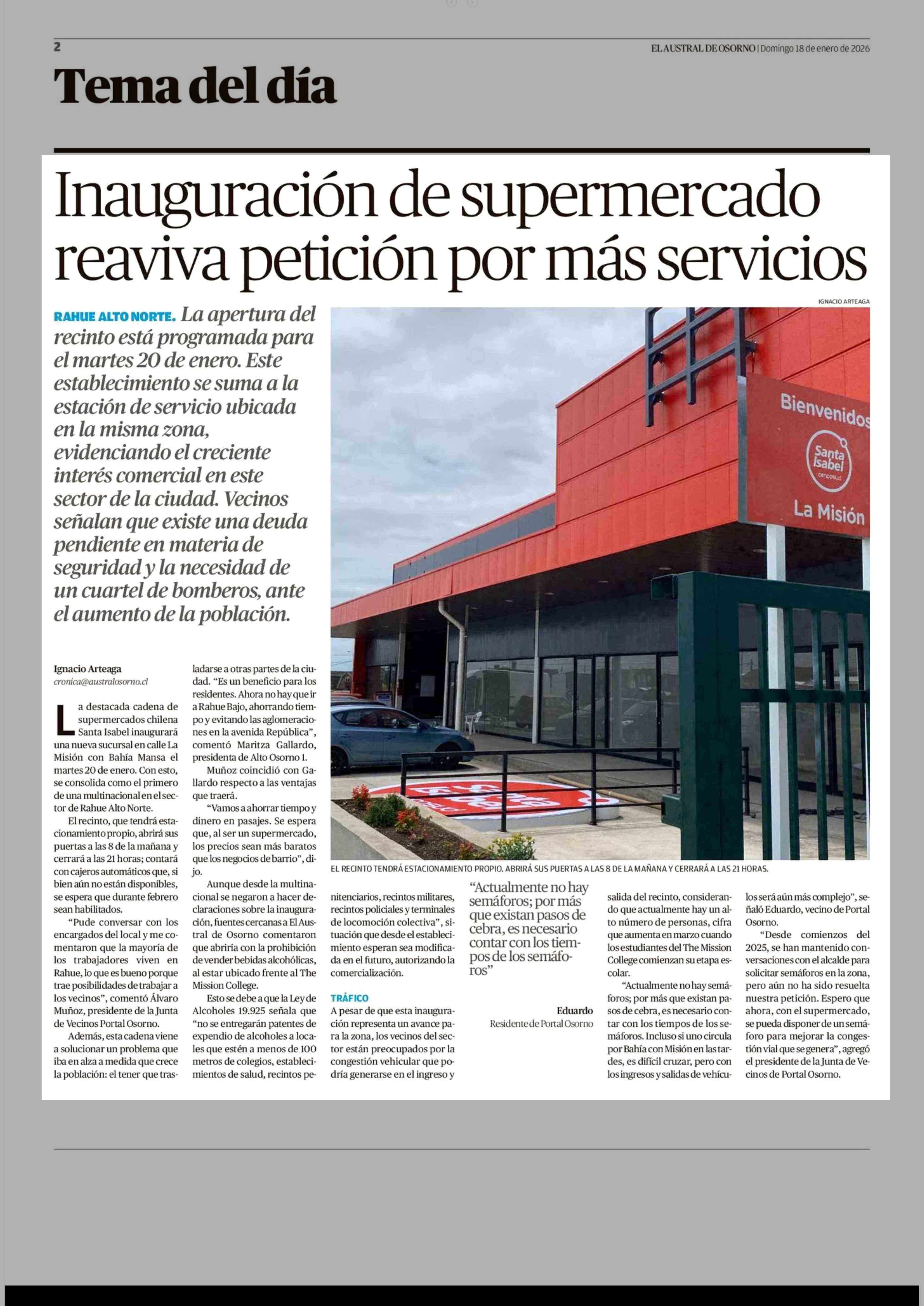 Inauguración de supermercado reaviva petición por más servicios 18-01-2026 El Austral de Osorno |