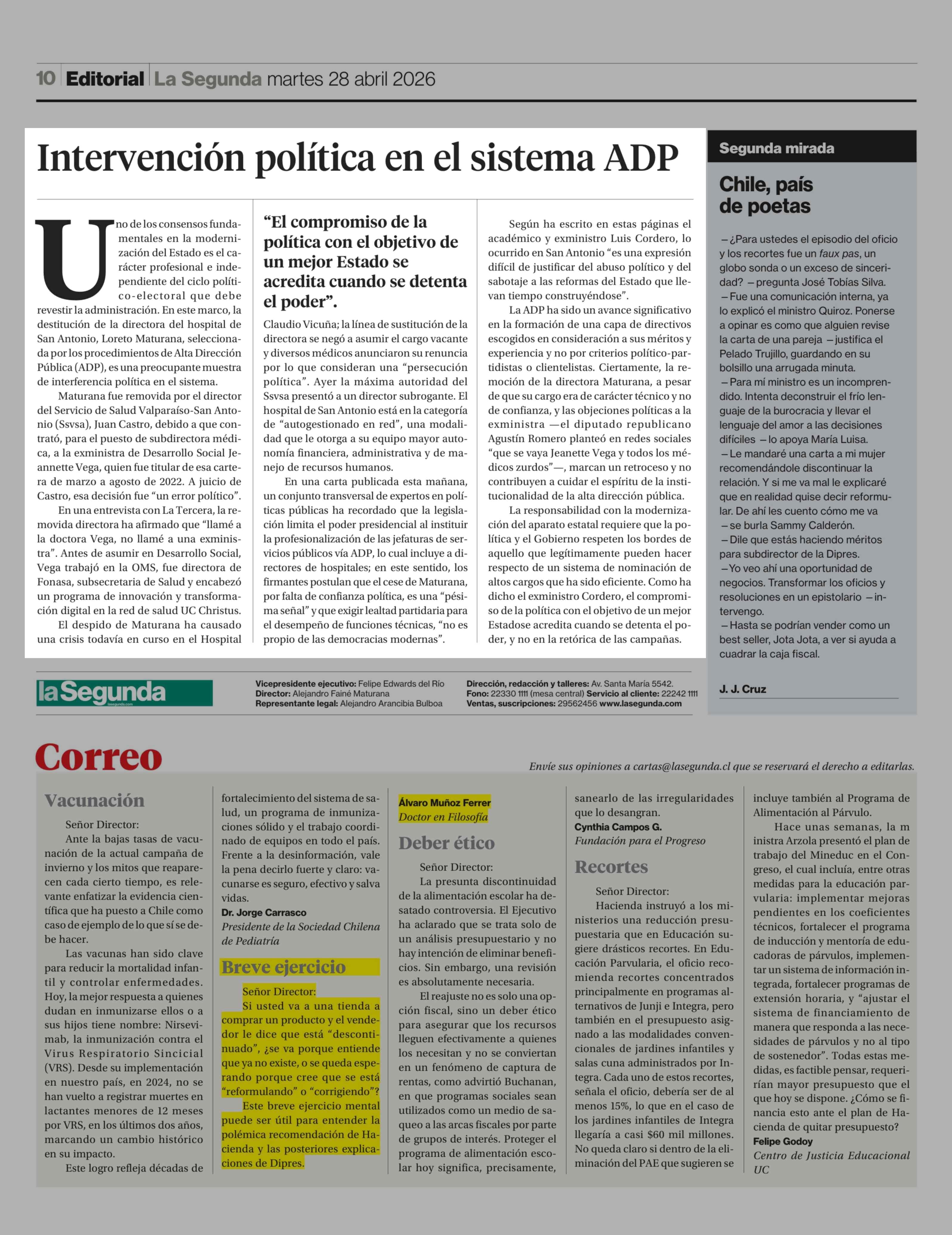 Fecha: 28-04-2026 Sector: Editorial Región: Región Metropolitana de Santiago
