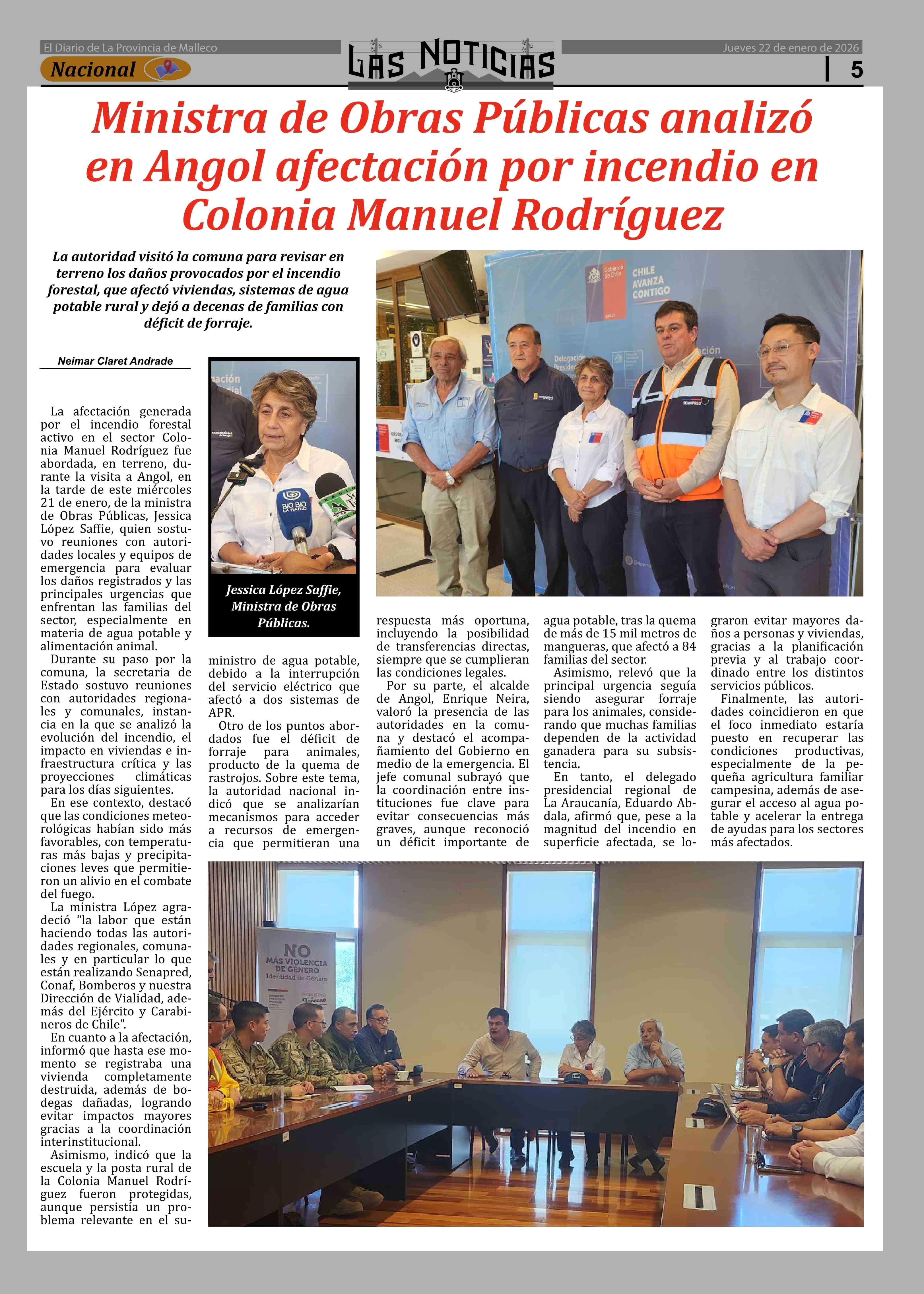 Ministra de Obras Públicas analizó en Angol afectación por incendio en Colonia Manuel Rodríguez 22-01-2026 Las Noticias |