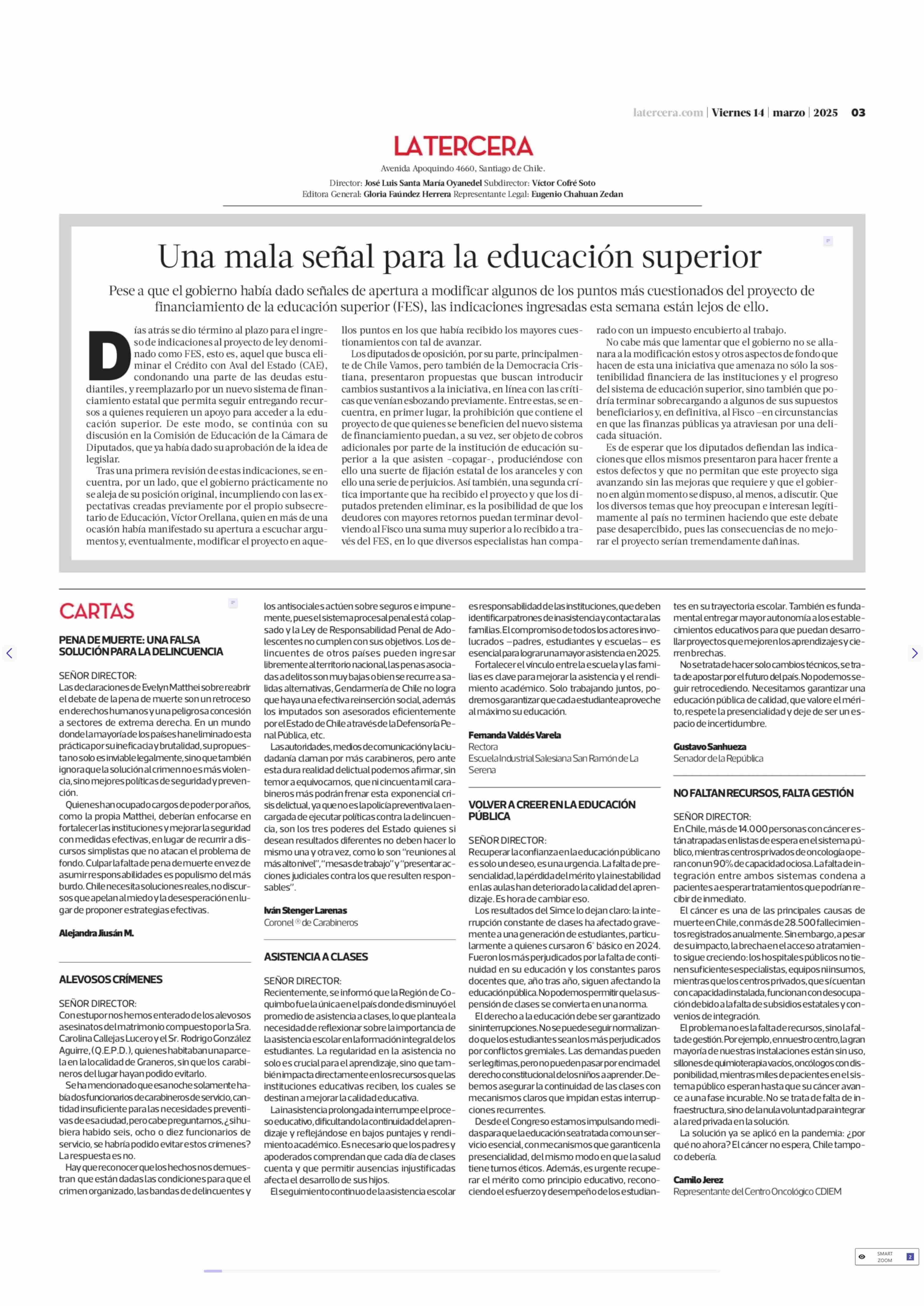 CARTAS: NO FALTAN RECURSOS, FALTA GESTIÓN 14-03-2025 La Tercera |