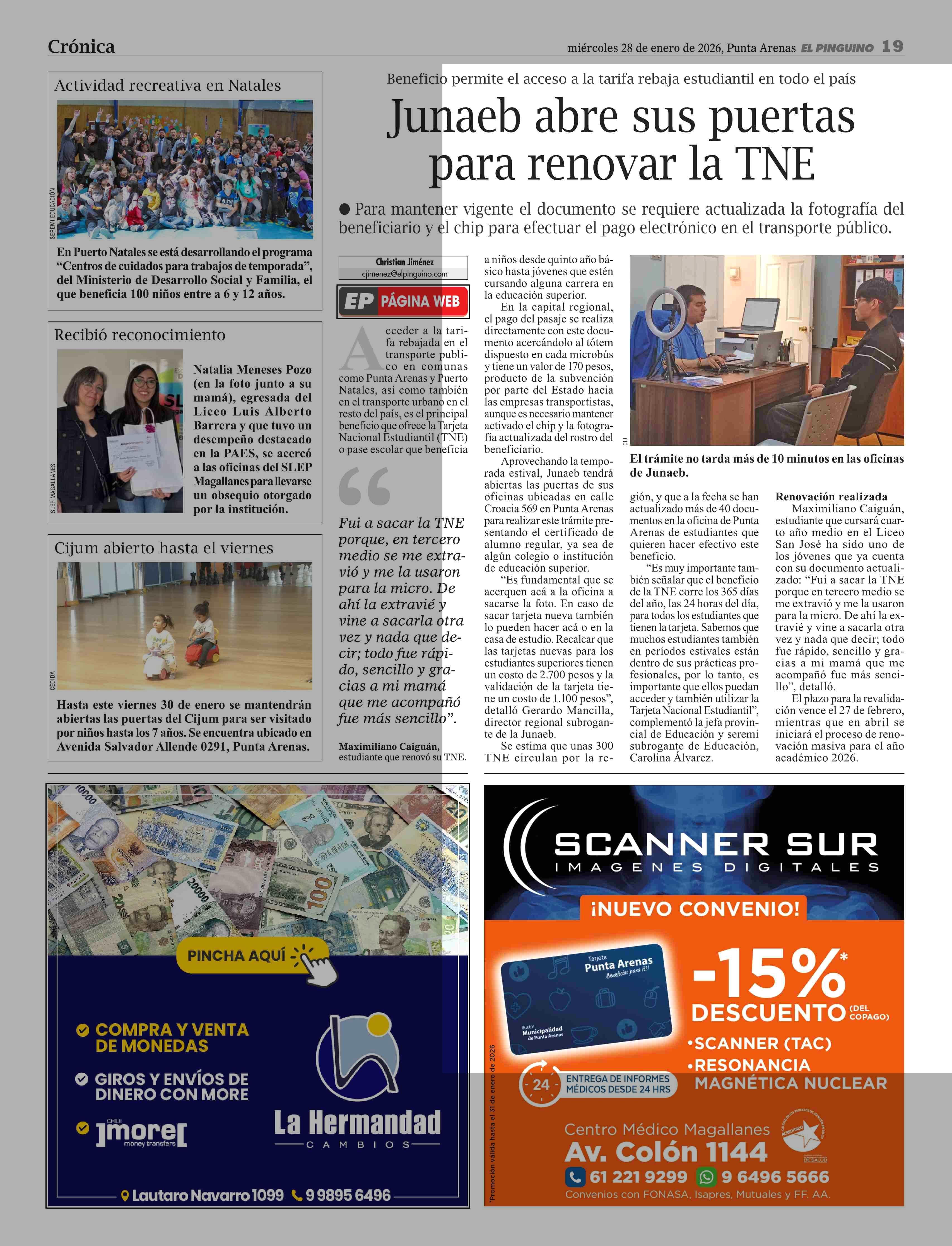 Junaeb abre sus puertas para renovar la TNE 28-01-2026 El Pingüino |