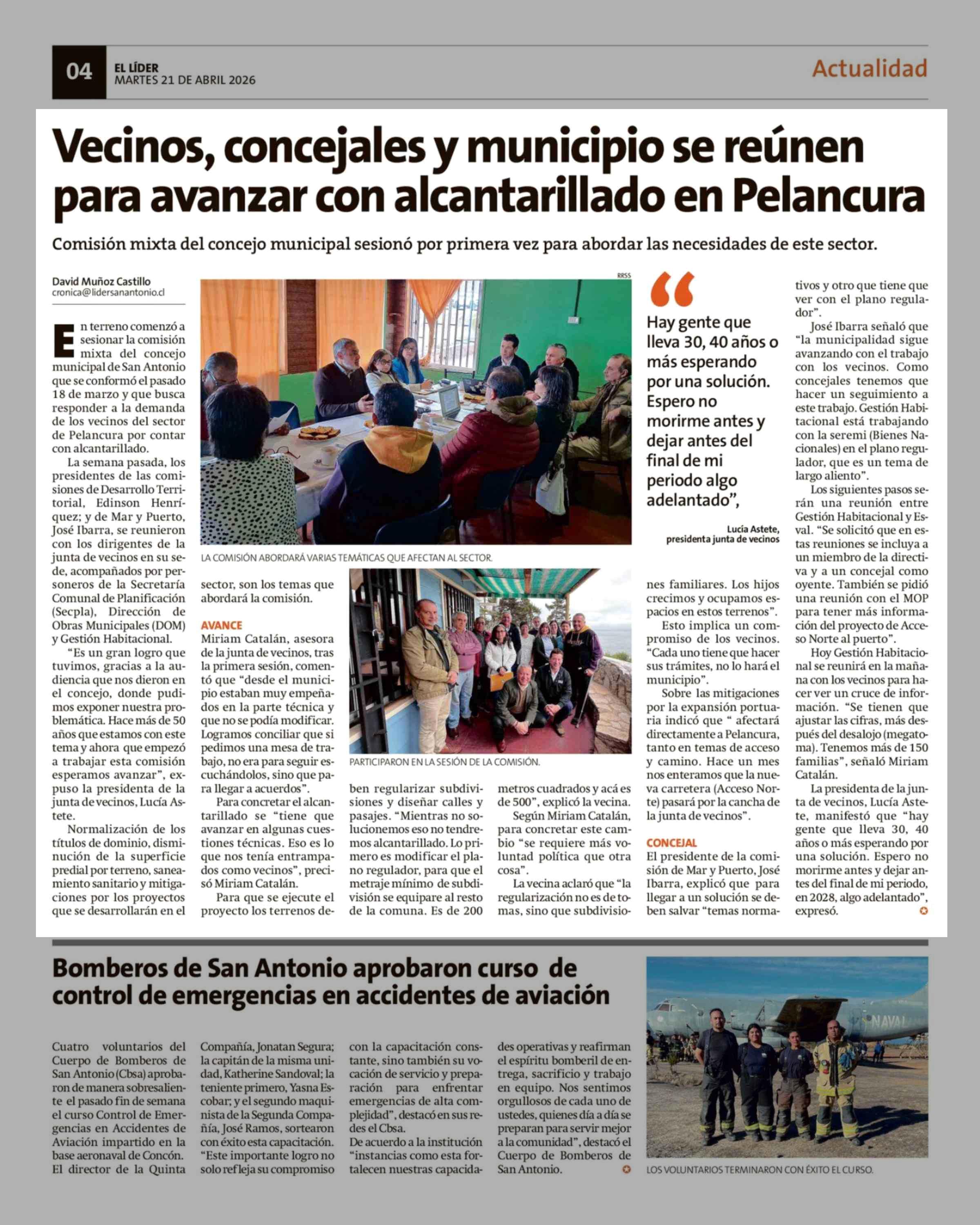 Vecinos, concejales y municipio se reúnen para avanzar con alcantarillado en Pelancura 21-04-2026 El Líder |