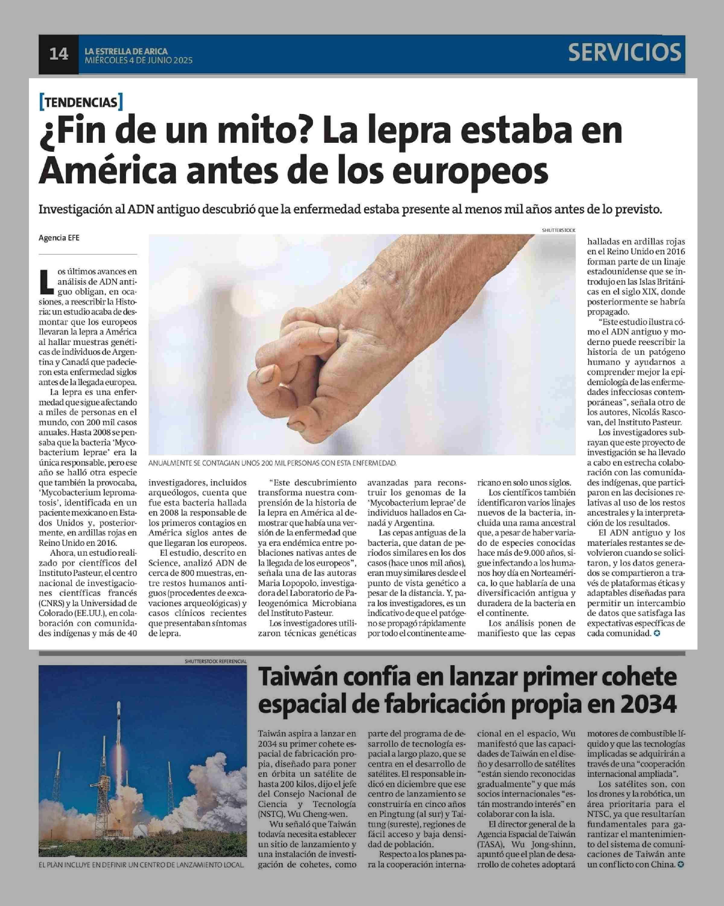 ¿Fin de un mito? La lepra estaba en América antes de los europeos 04-06-2025 La Estrella de Arica |