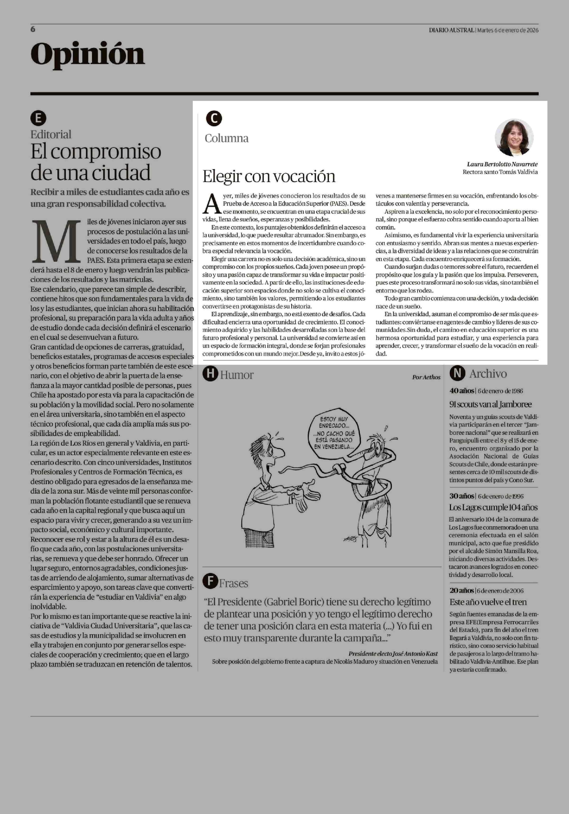 Fecha: 06-01-2026 Sector: Columnas de Opinión Región: Región de Los Ríos