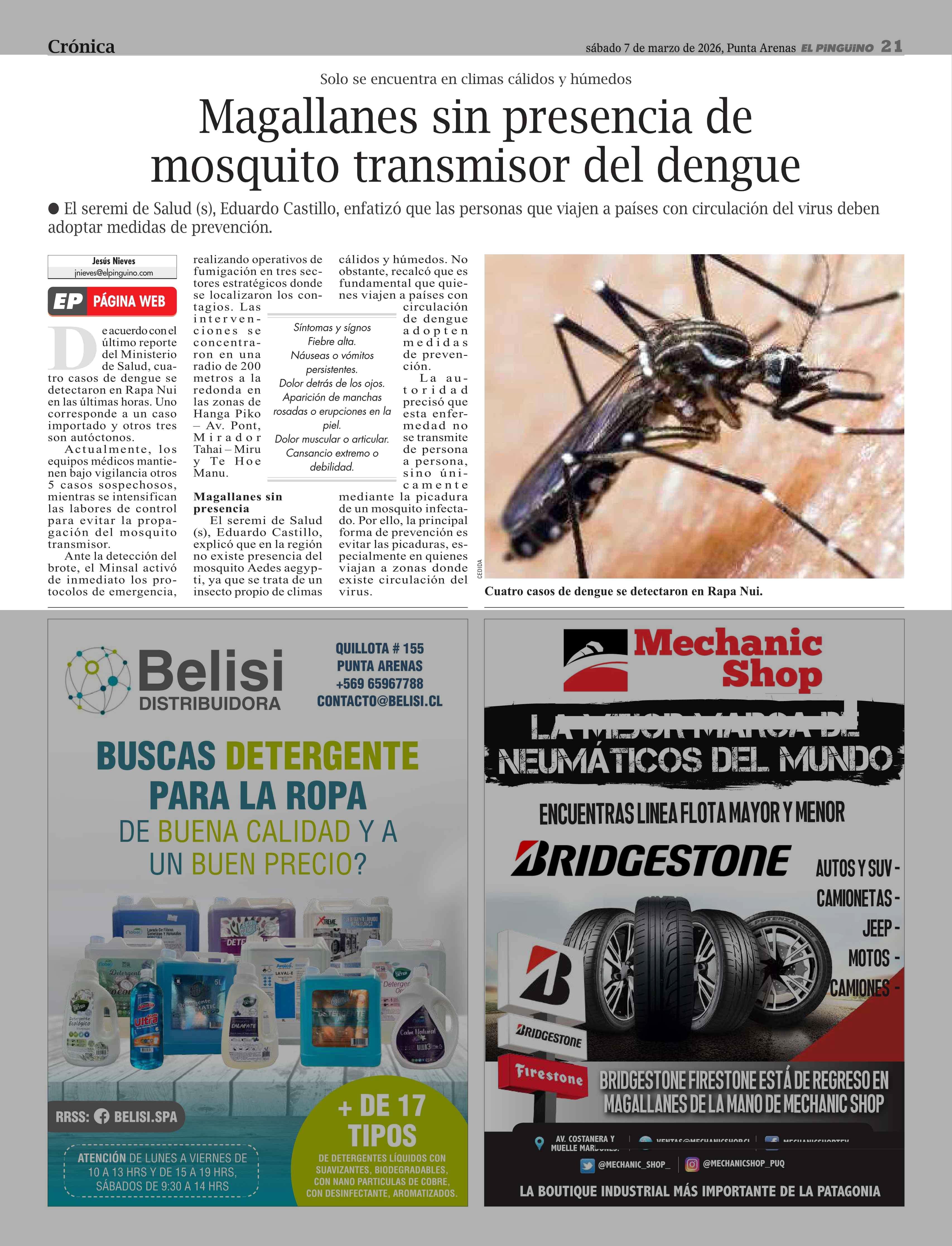 Magallanes sin presencia de mosquito transmisor del dengue 07-03-2026 El Pingüino |