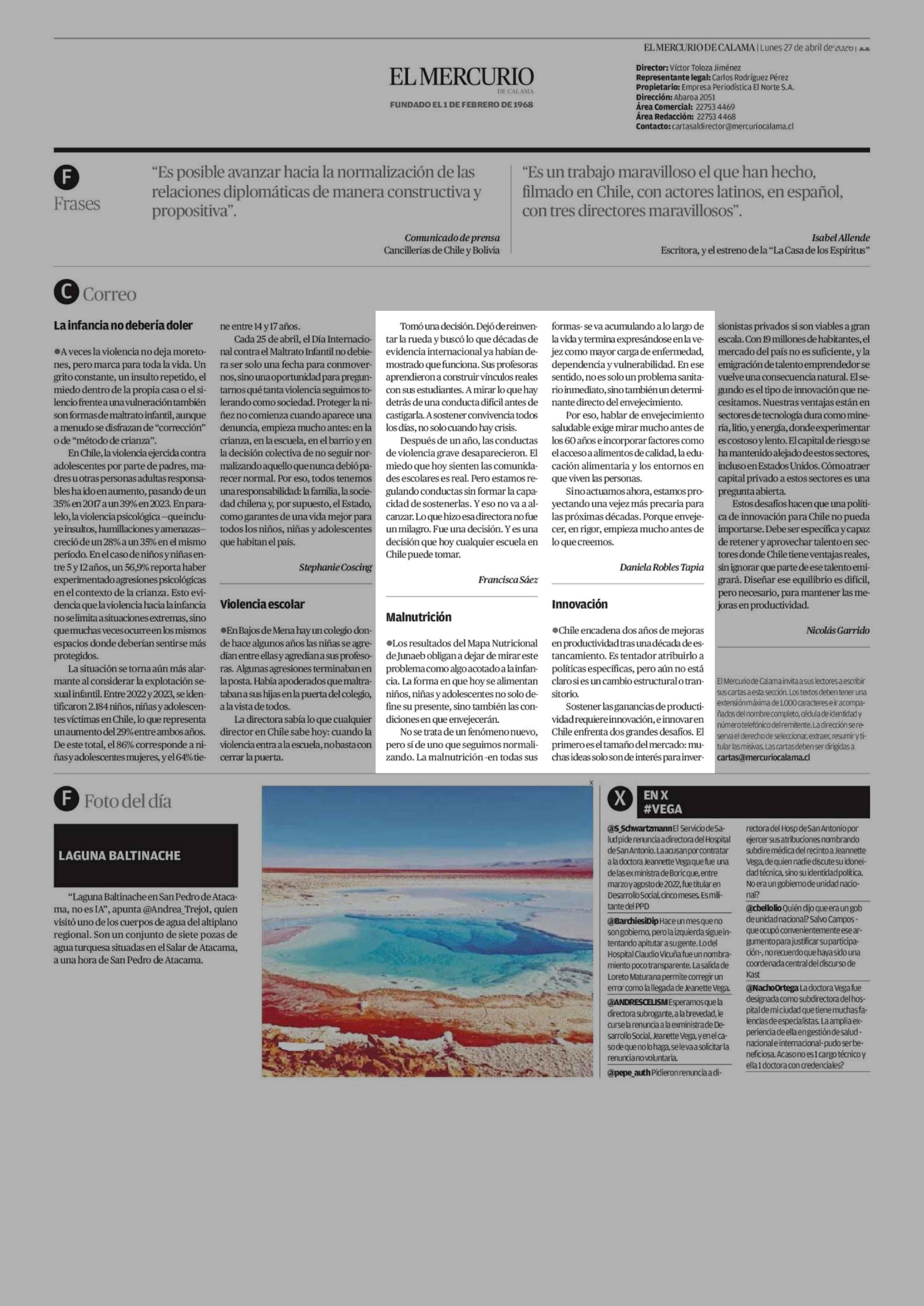 Cartas: Malnutrición 27-04-2026 El Mercurio de Calama |