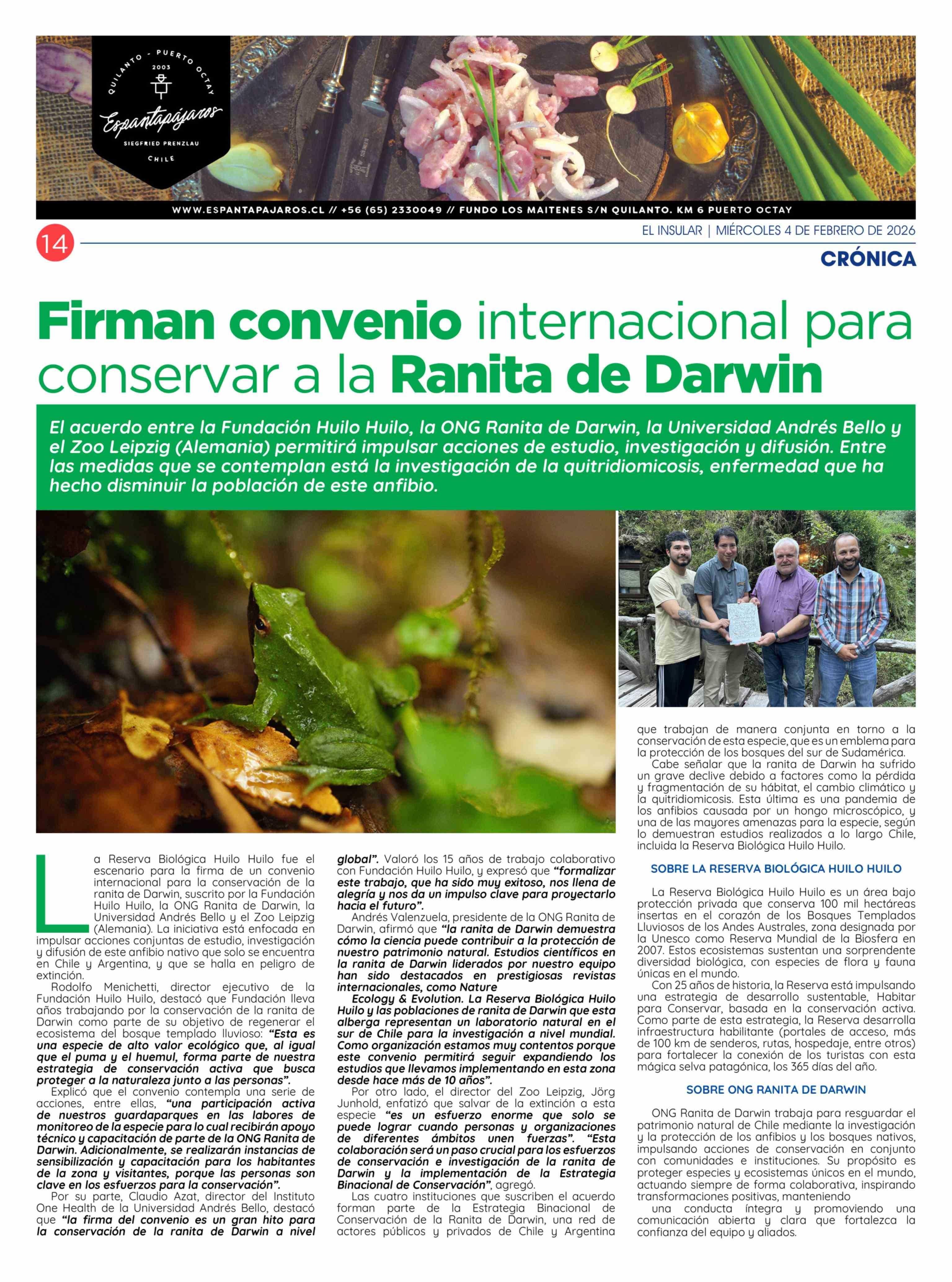 Firman convenio internacional para conservar a la Ranita de Darwin 04-02-2026 El Insular |