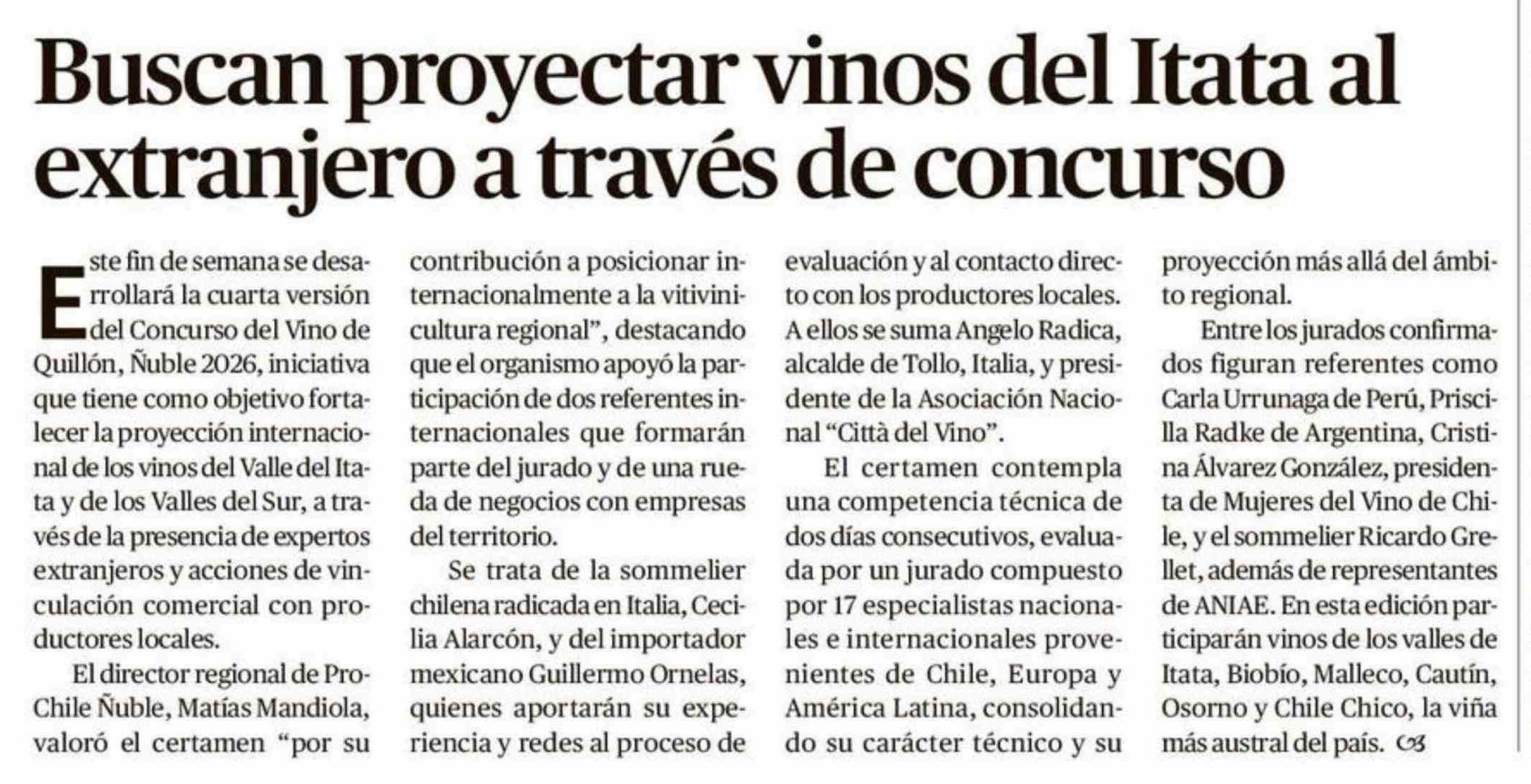Buscan proyectar vinos del Itata al extranjero a través de concurso 17-01-2026 Crónica de Chillán |