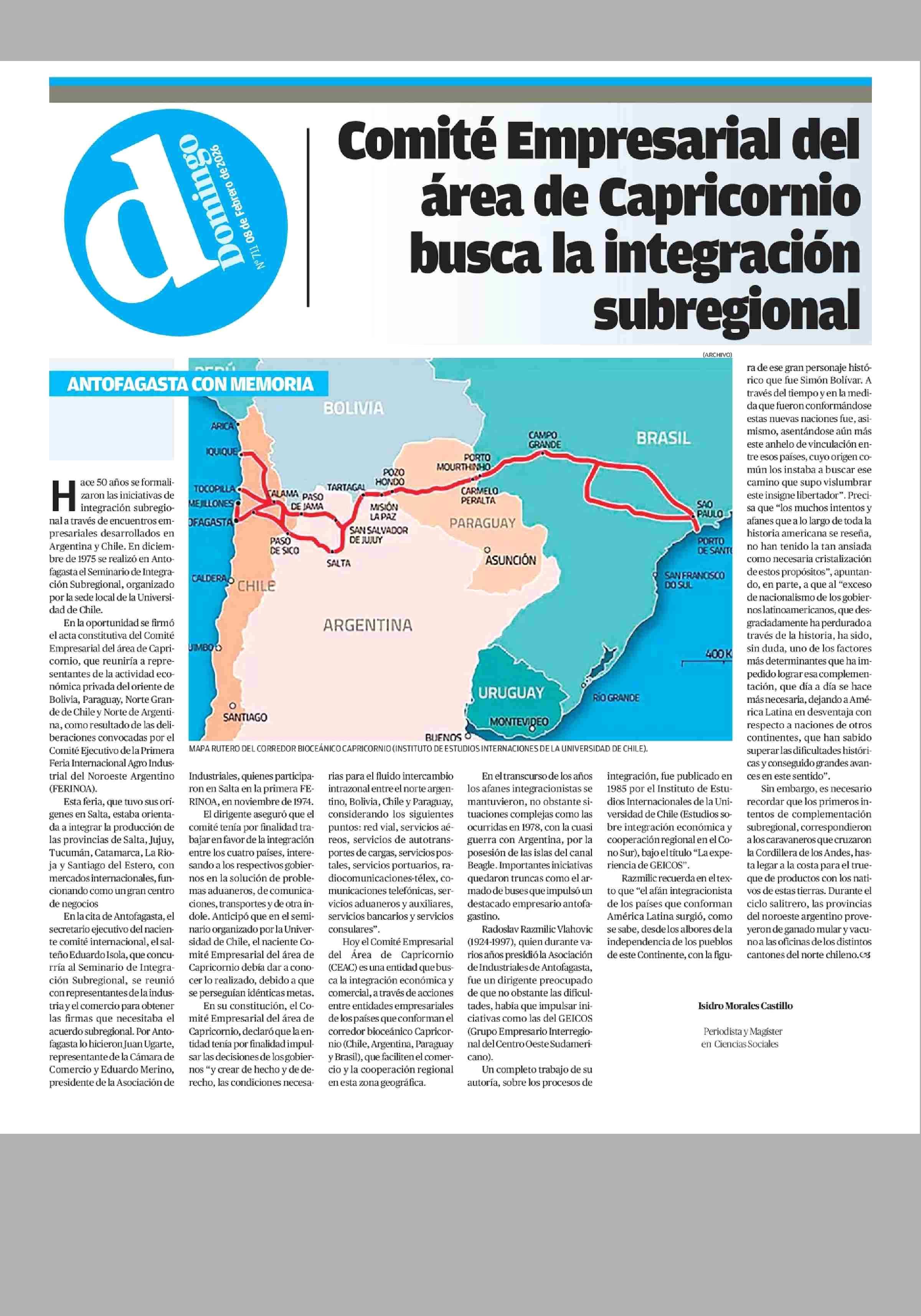 Comité Empresarial del área de Capricornio busca la integración subregional 08-02-2026 El Mercurio de Calama |