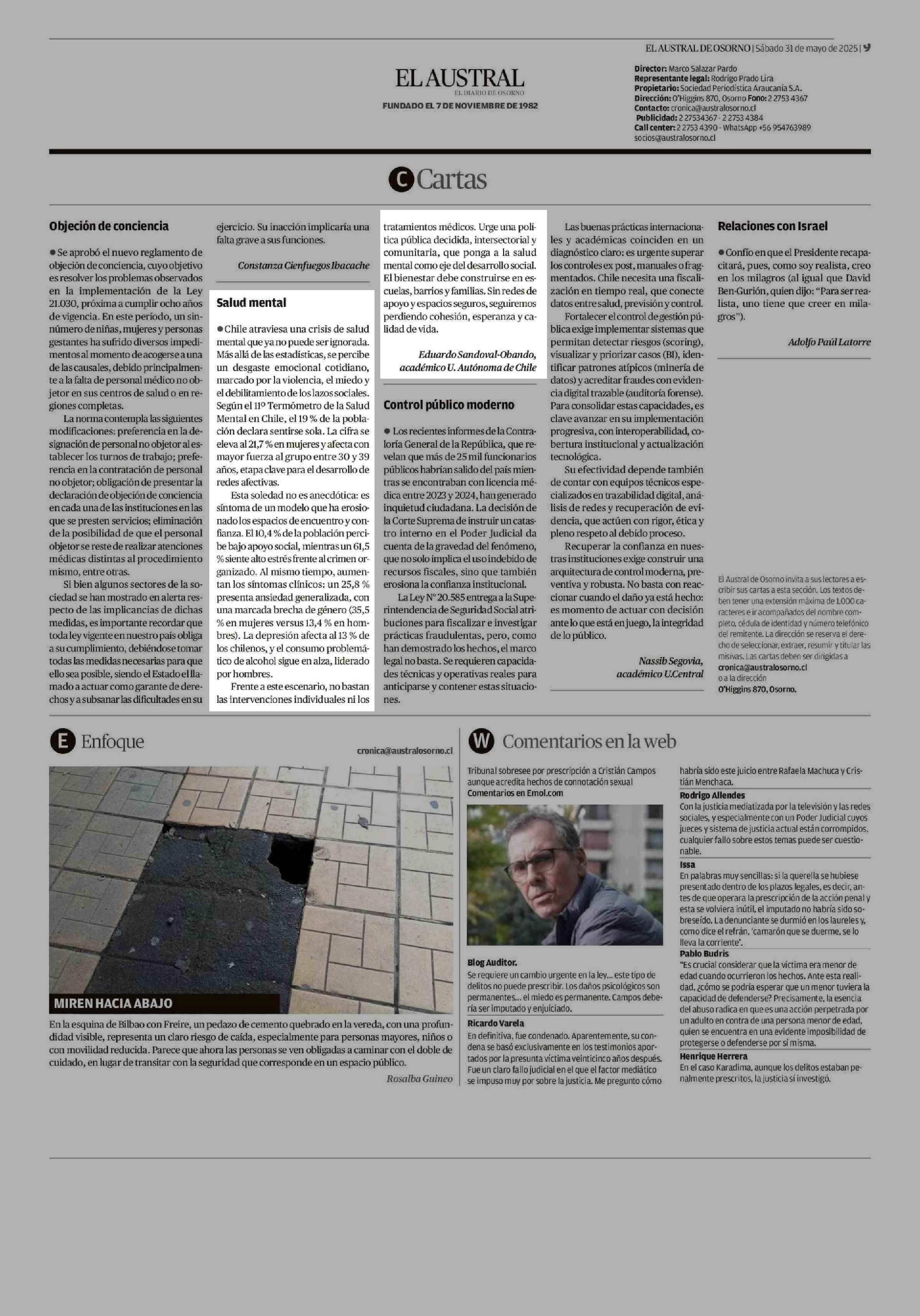 Fecha: 31-05-2025 Sector: Opinión - Cartas Región: Región de Los Lagos