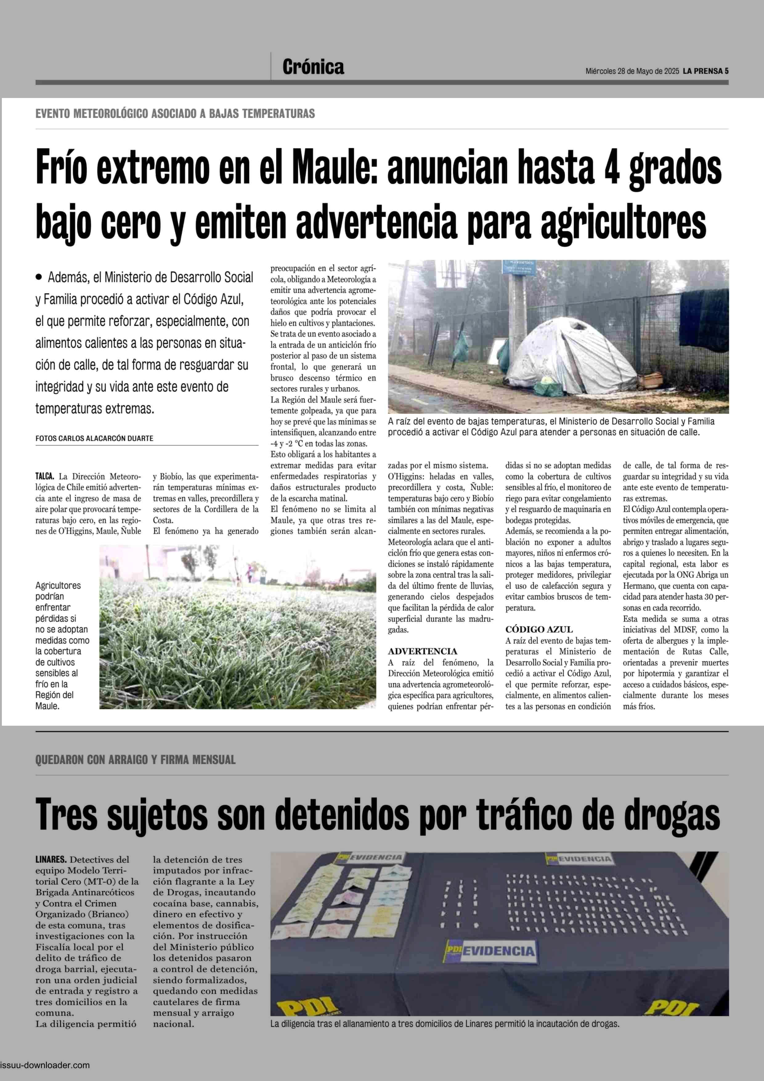 Frío extremo en el Maule: anuncian hasta 4 grados bajo cero y emiten advertencia para agricultores 28-05-2025 La Prensa de Curicó |