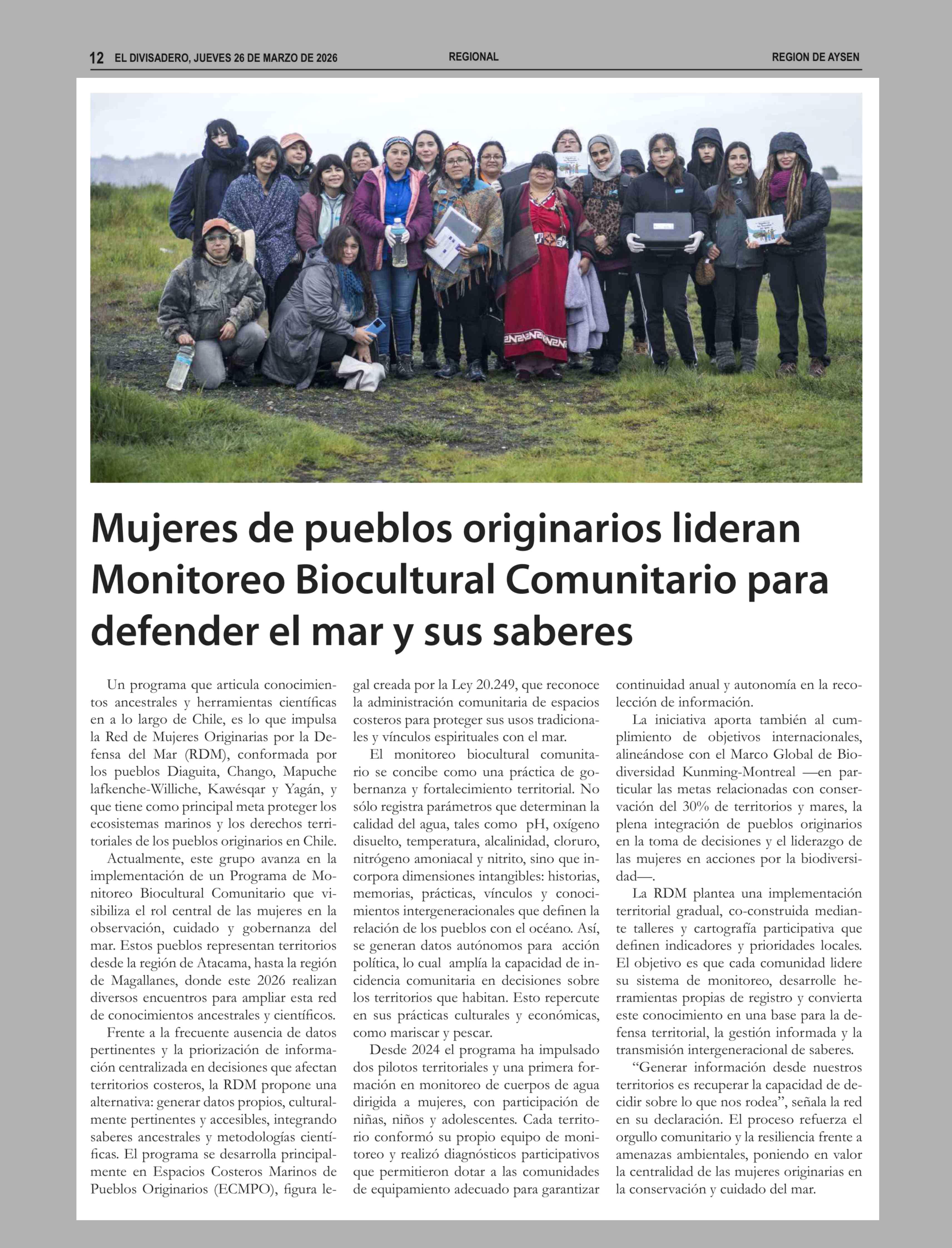 Mujeres de pueblos originarios lideran Monitoreo Biocultural Comunitario para defender el mar y sus saberes 26-03-2026 El Divisadero |