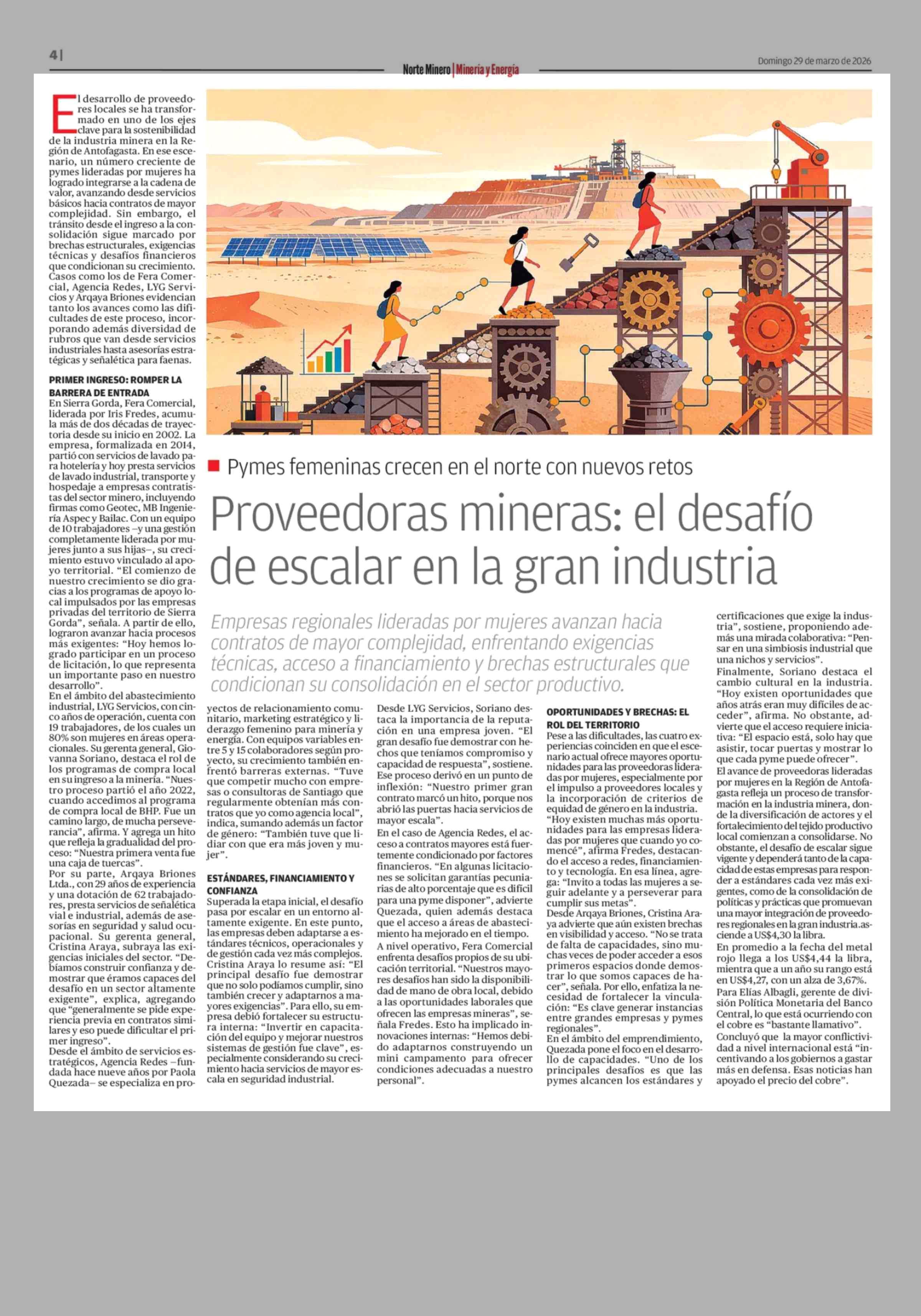Proveedoras mineras: el desafío de escalar en la gran industria 29-03-2026 El Mercurio de Antofagasta |