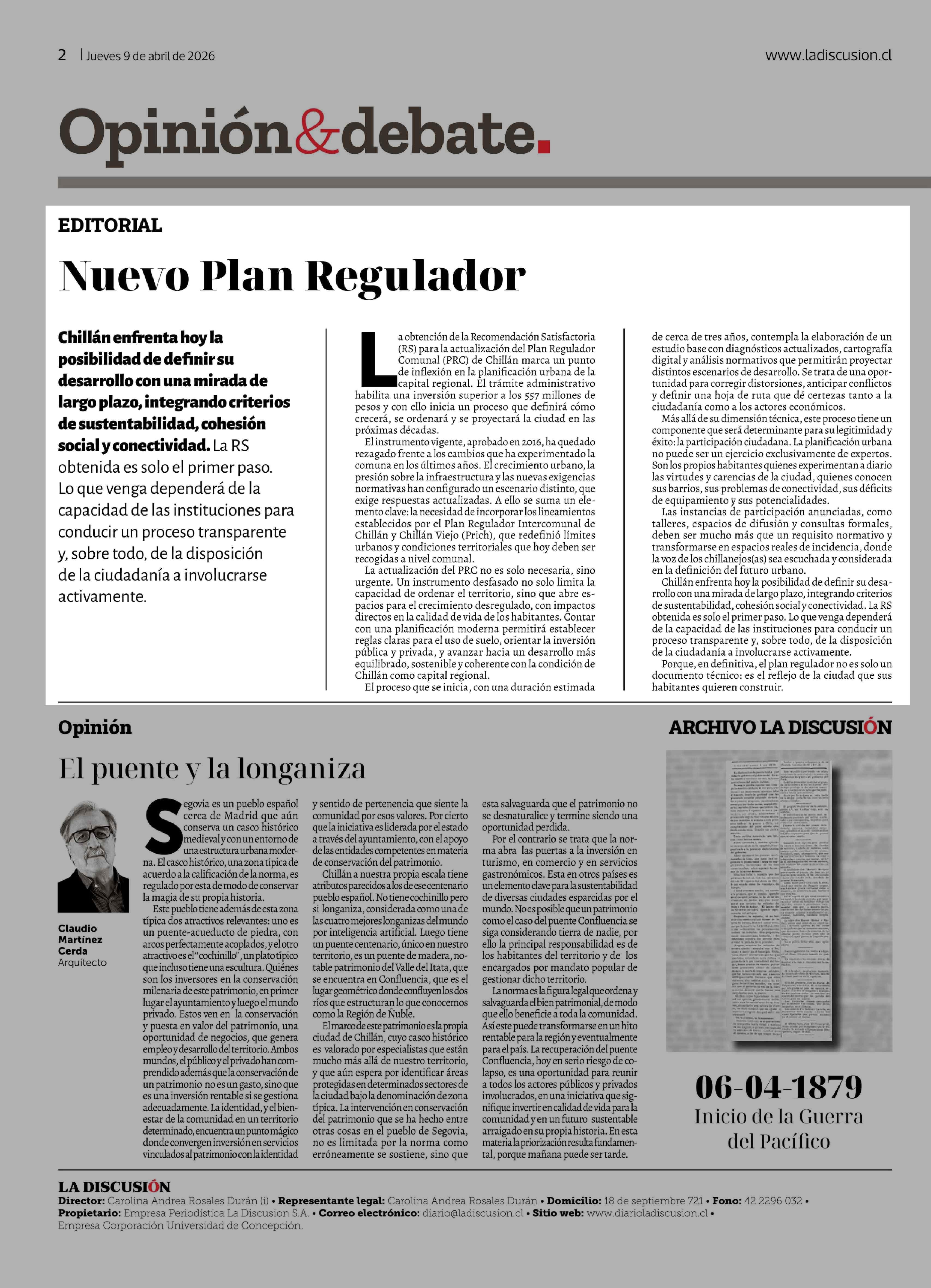 Editorial: Nuevo Plan Regulador 09-04-2026 La Discusión |