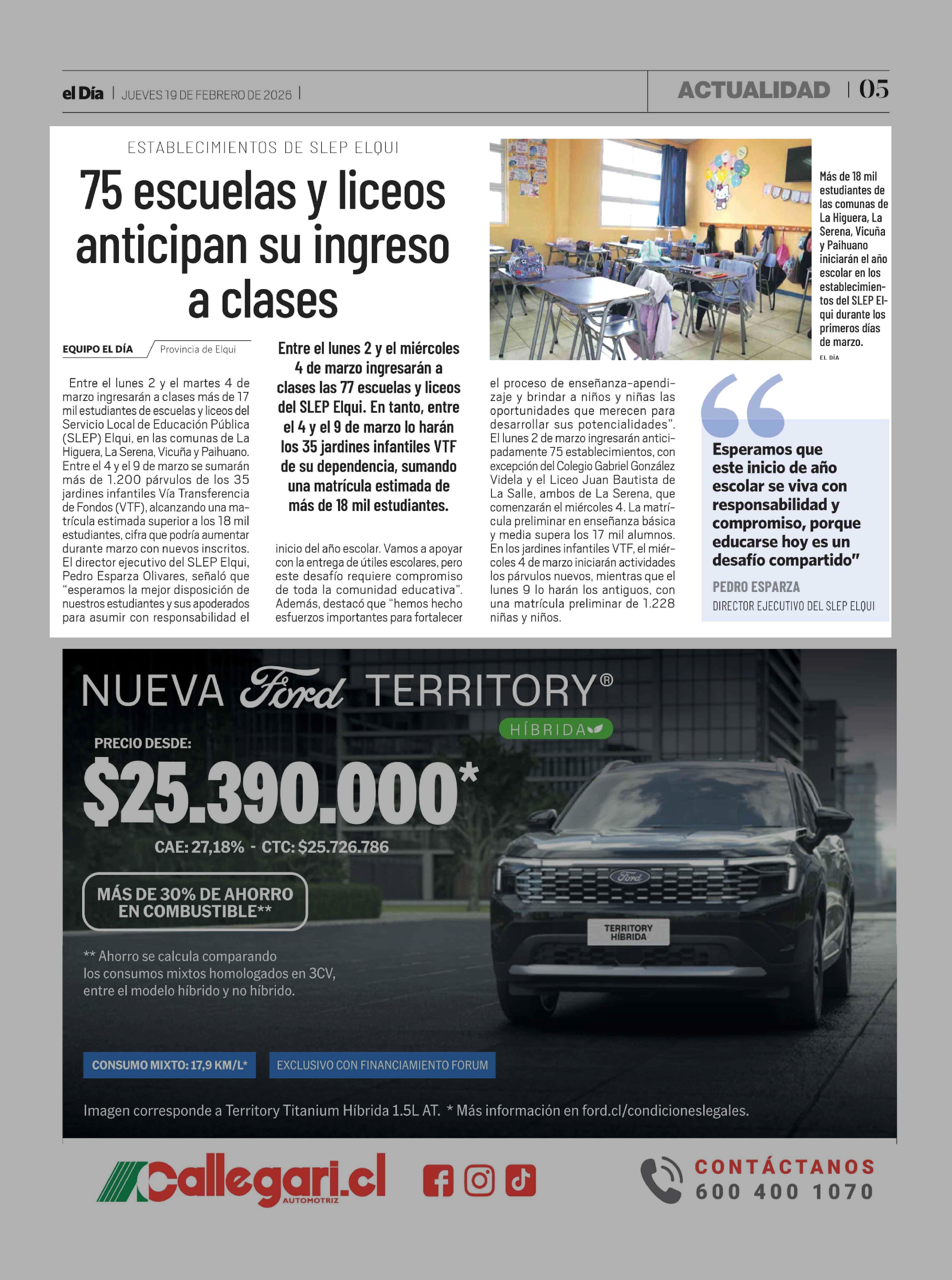 75 Escuelas y liceos anticipan su ingreso a clases 19-02-2026 El Día |