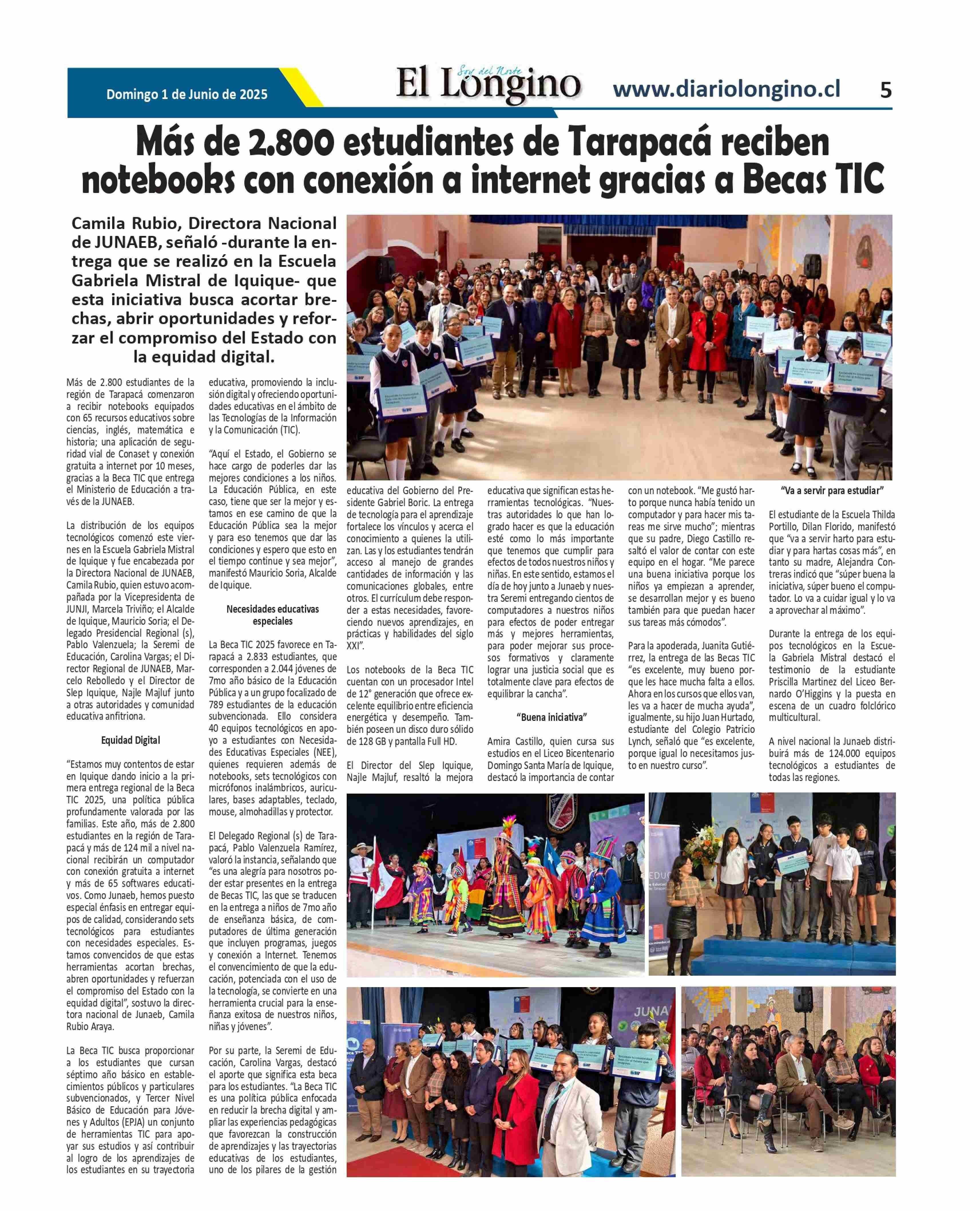 Título: Más de 2.800 estudiantes de Tarapacá reciben notebooks con conexión a internet gracias a Becas TIC