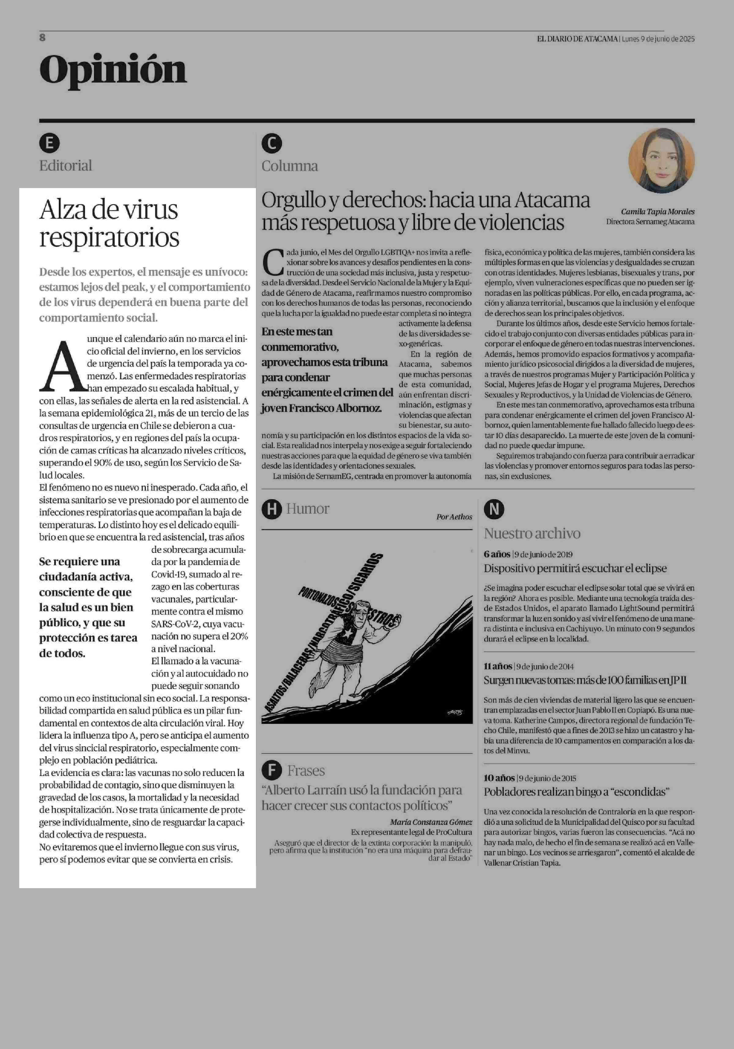 | Fecha: | 09-06-2025 | Sector: | Noticia general | Región: | Región de Atacama |