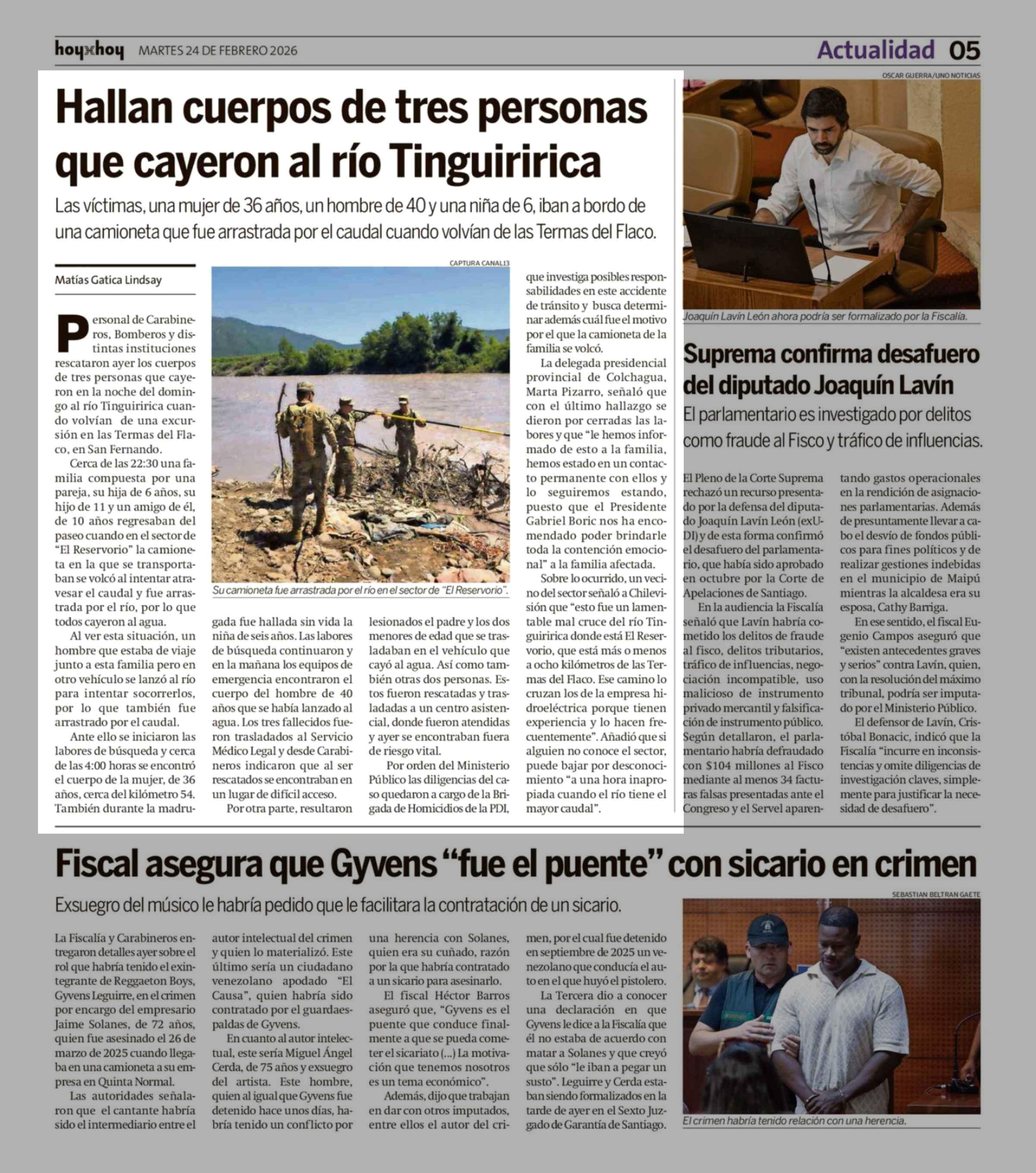 Título: Hallan cuerpos de tres personas que cayeron al río Tinguiririca