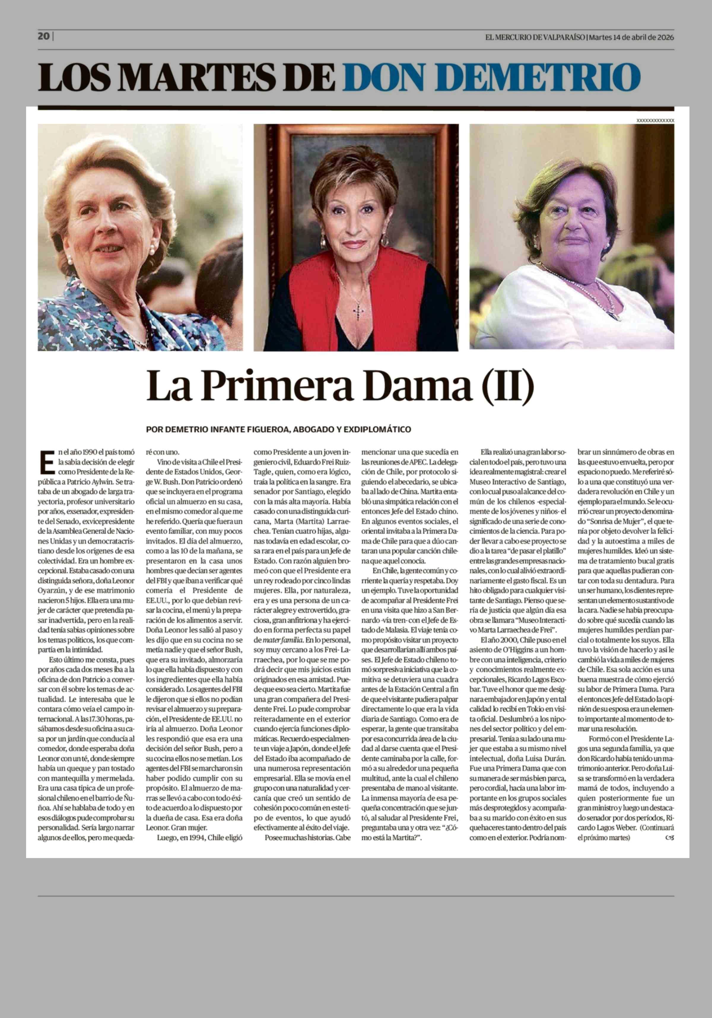 Columnas de Opinión: La Primera Dama (II) 14-04-2026 El Mercurio de Valparaíso |