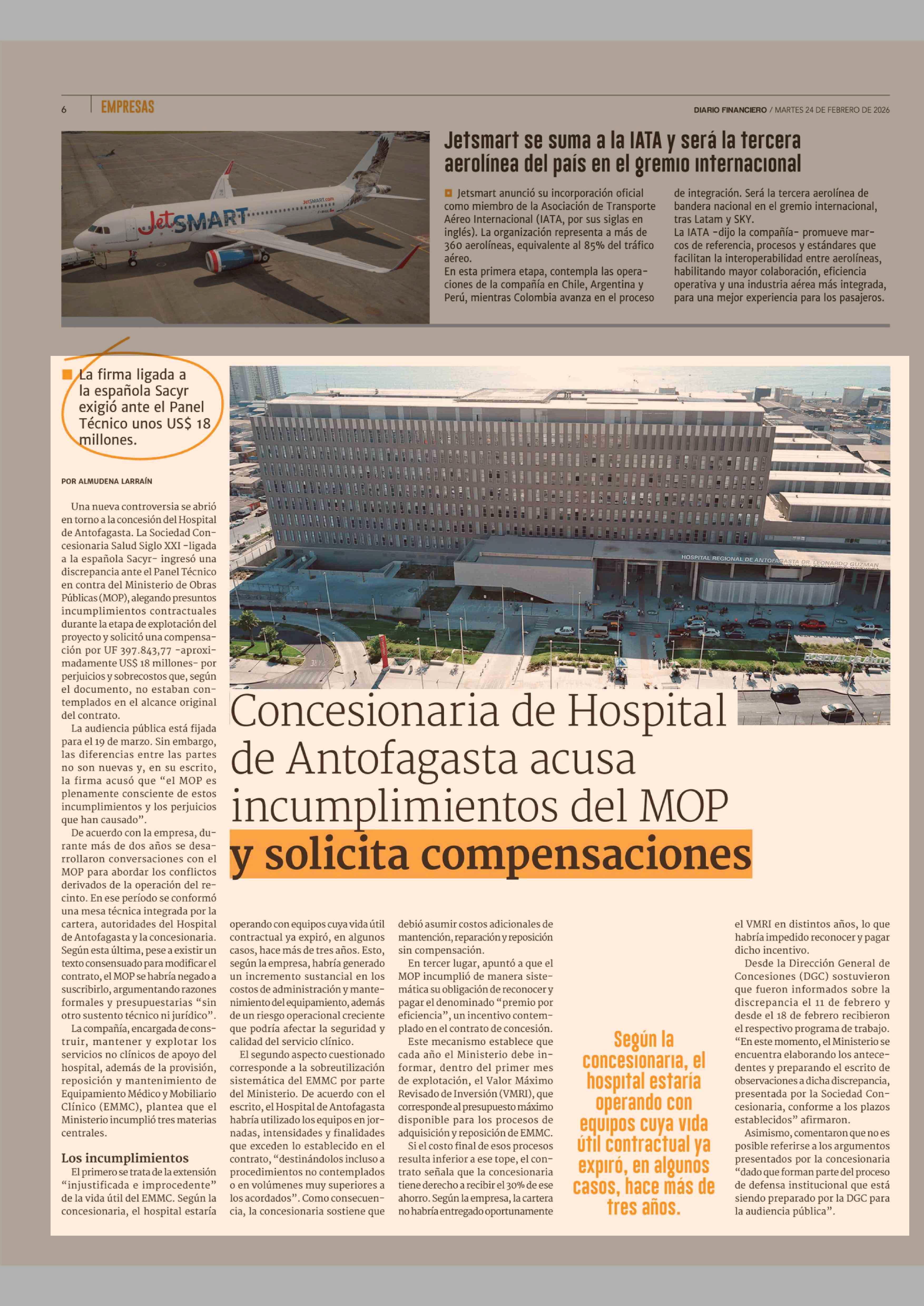 Título: Concesionaria de Hospital de Antofagasta acusa incumplimientos del MOP y solicita compensaciones