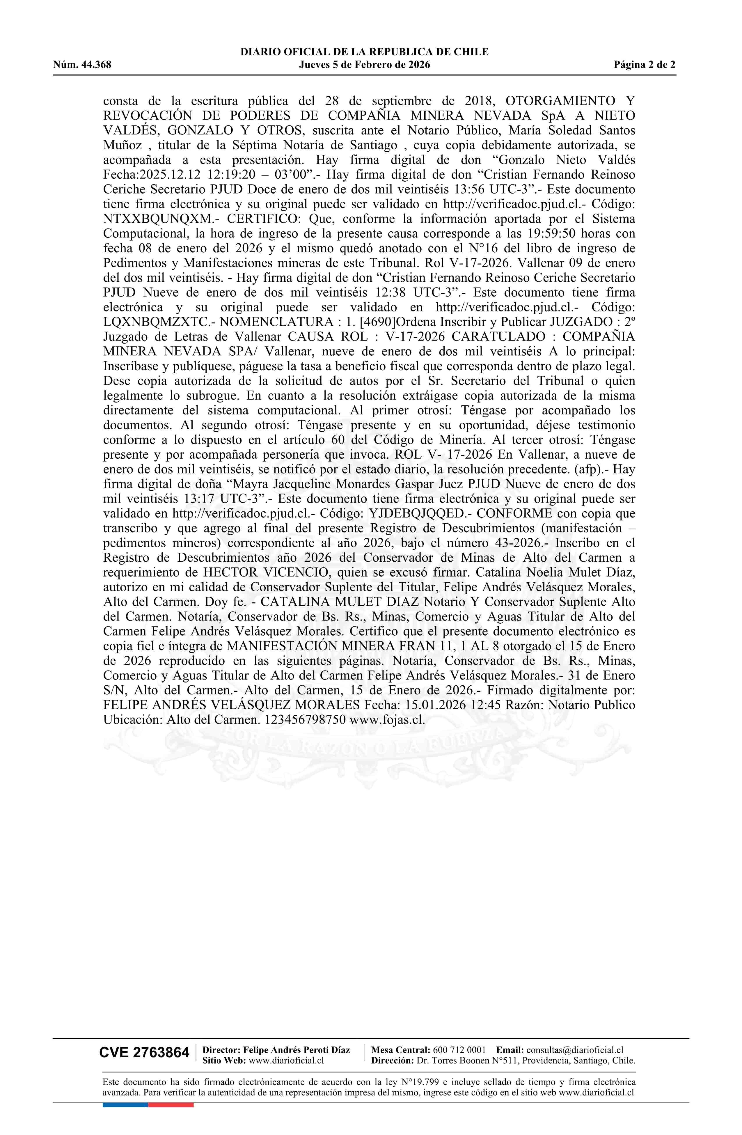 05-02-2026 DIARIO OFICIAL CHILE - BOLETÍN OFICIAL DE MINERÍA