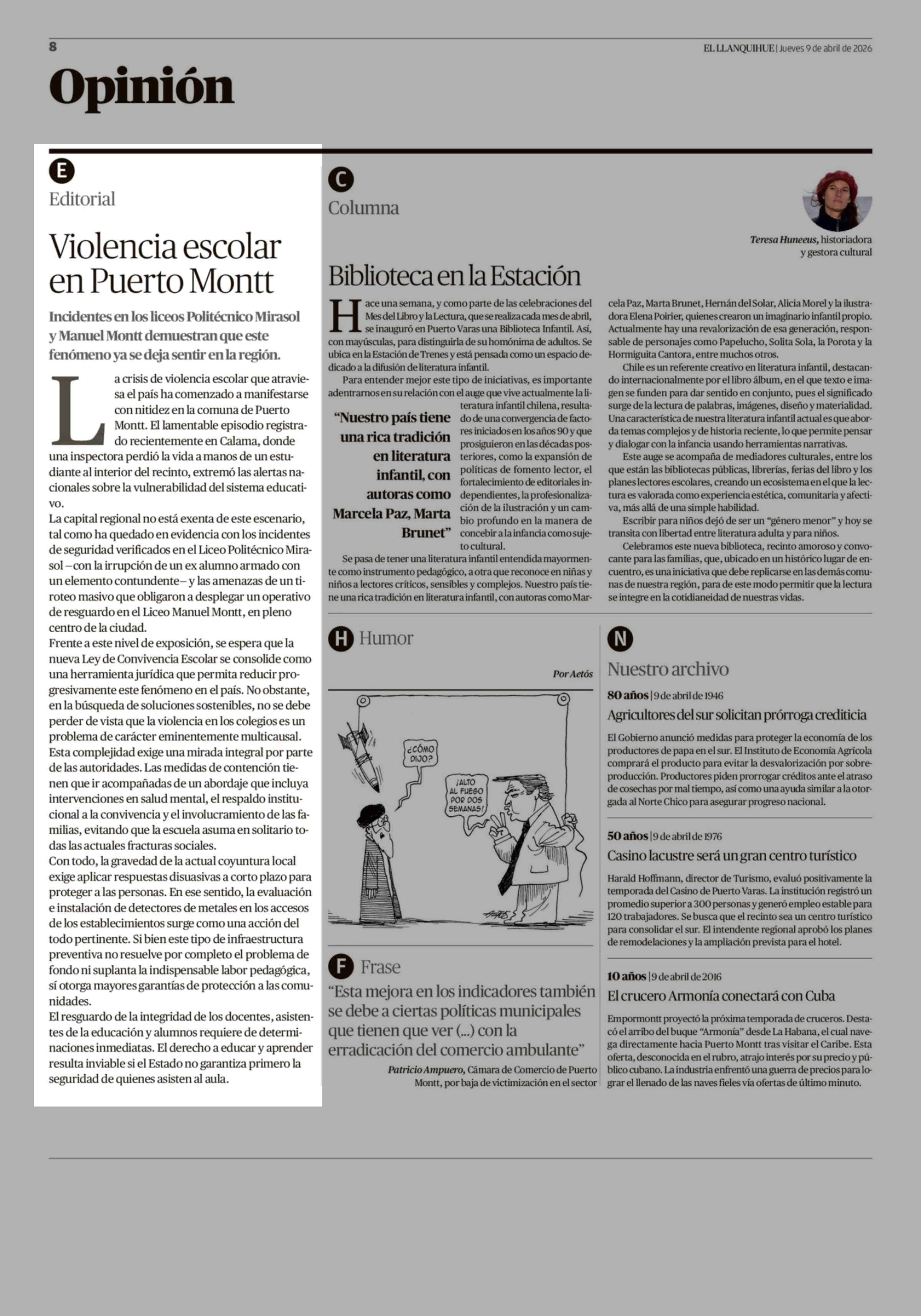 Fecha: 09-04-2026 Sector: Editorial Región: Región de Los Lagos