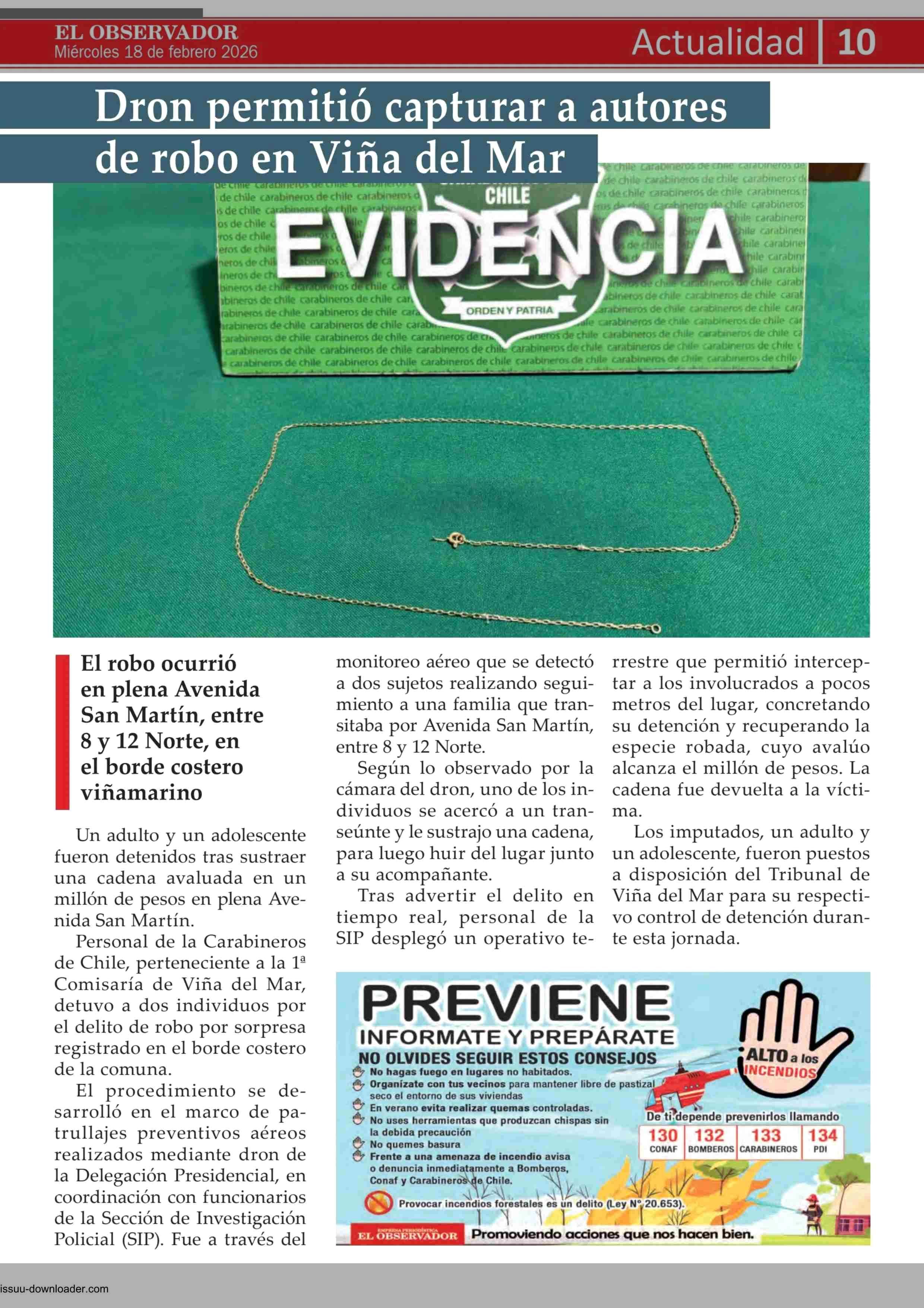 Dron permitió capturar a autores de robo en Viña del Mar 18-02-2026 El Observador Vespertino |