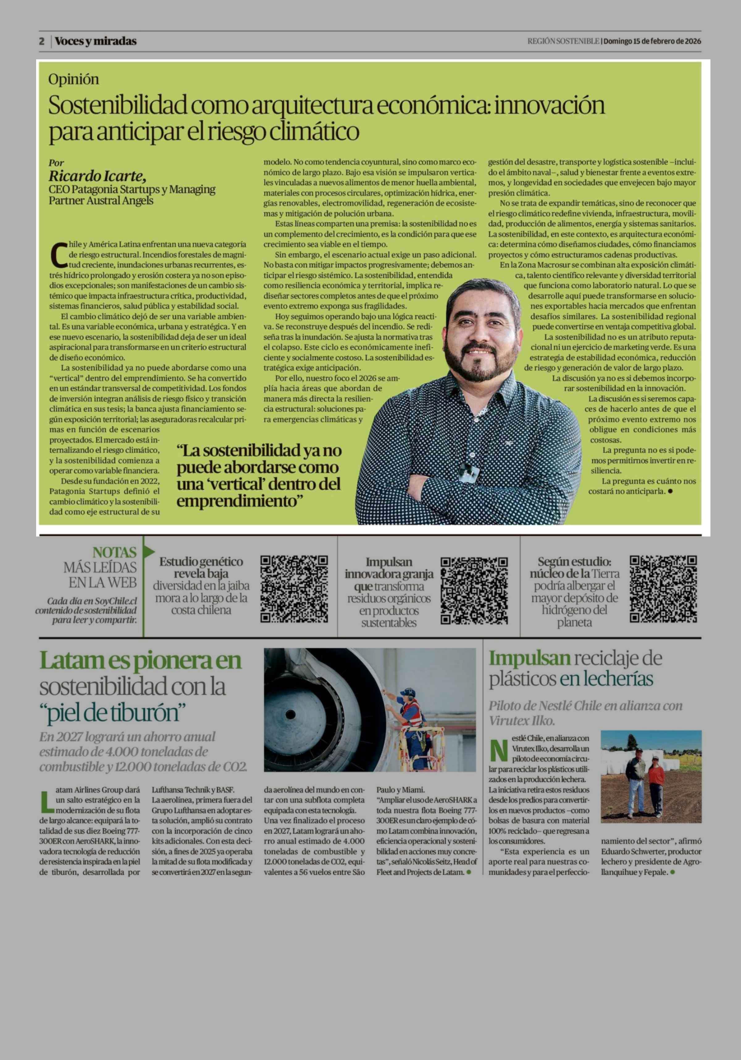 Título: Columnas de Opinión: Sostenibilidad como arquitectura económica: innovación para anticipar el riesgo climático