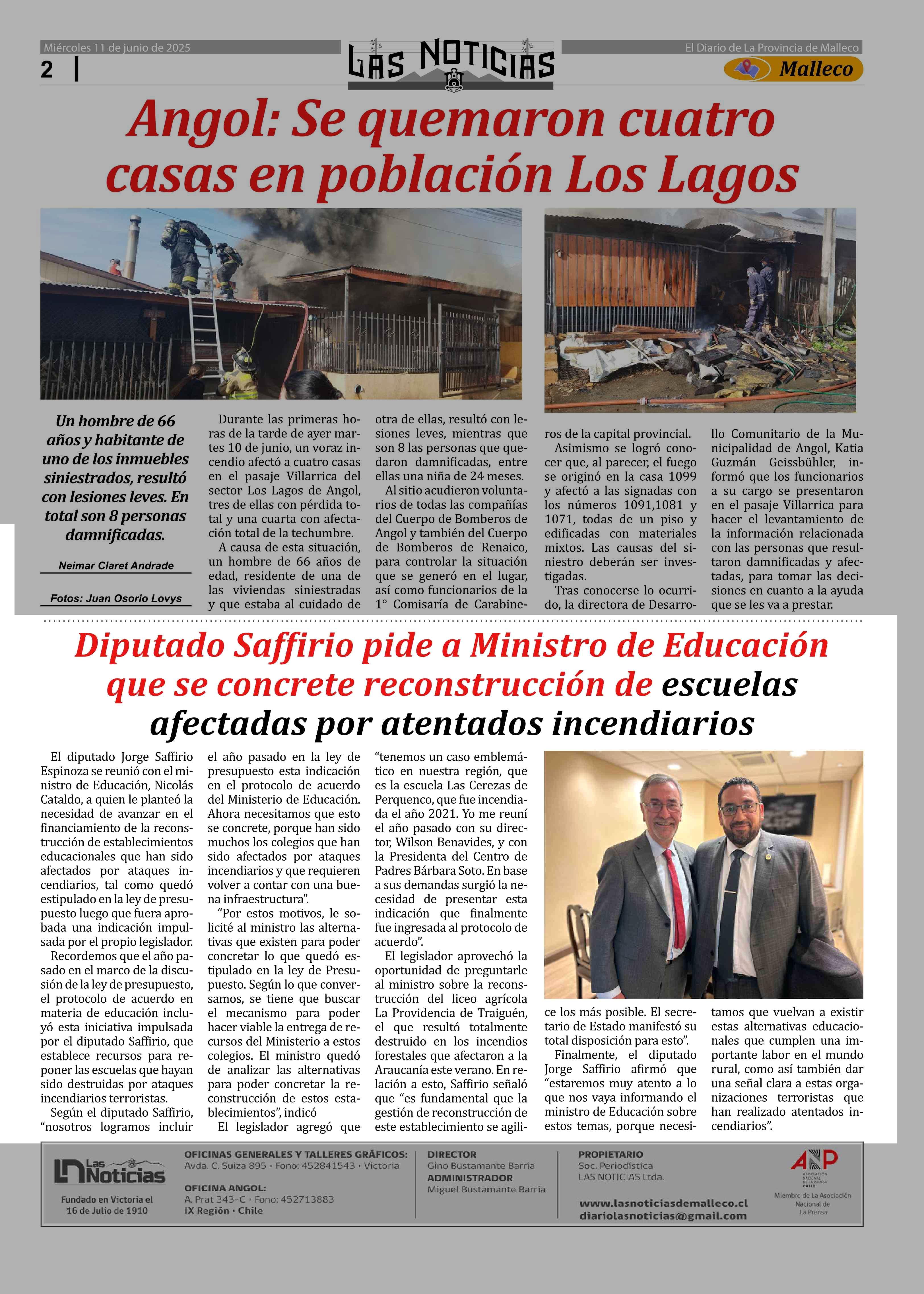 Diputado Saffirio pide a Ministro de Educación que se concrete reconstrucción de escuelas afectadas por atentados incendiarios 11-06-2025 Las Noticias |