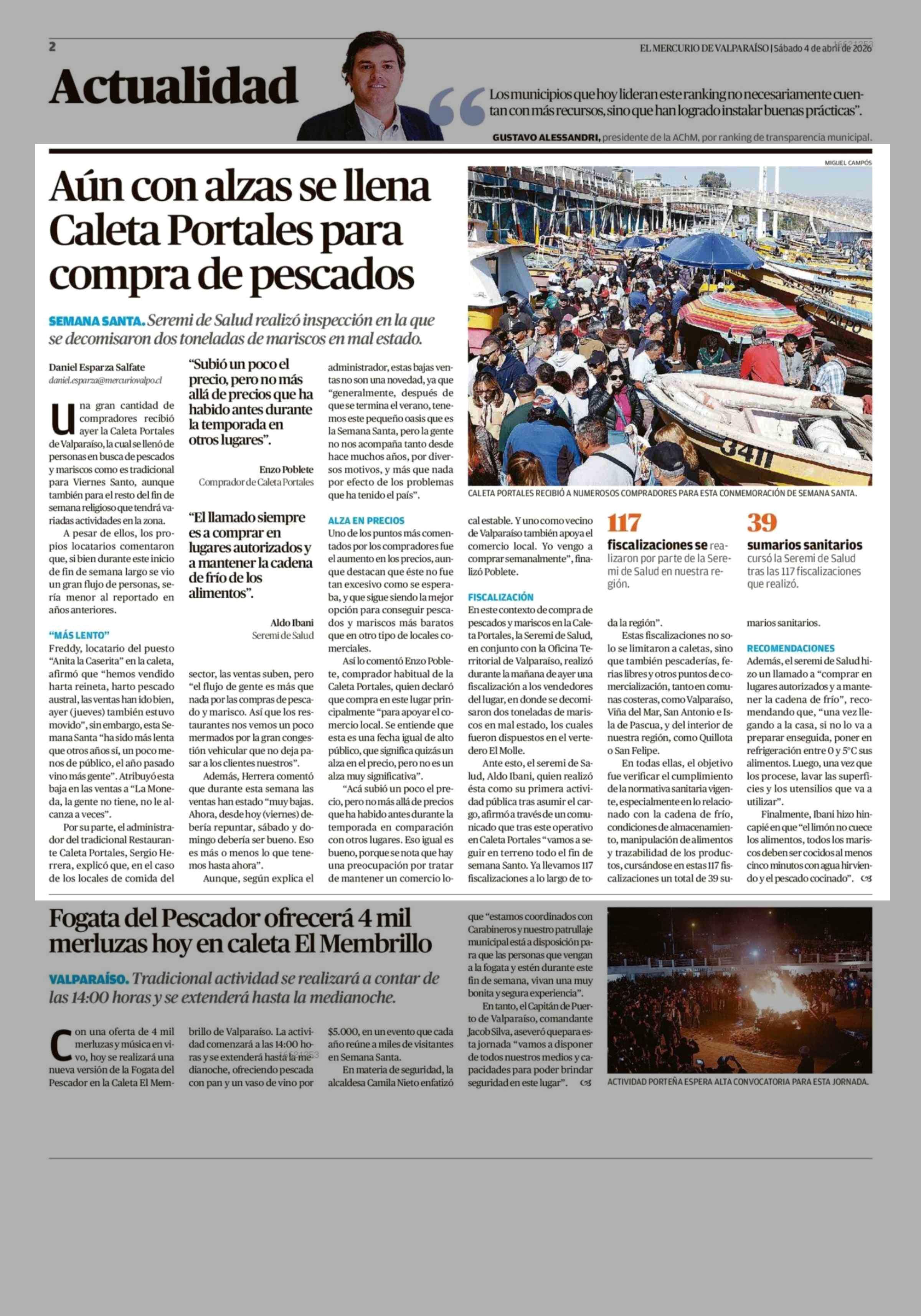 Aún con alzas se llena Caleta Portales para compra de pescados 04-04-2026 El Mercurio de Valparaíso |
