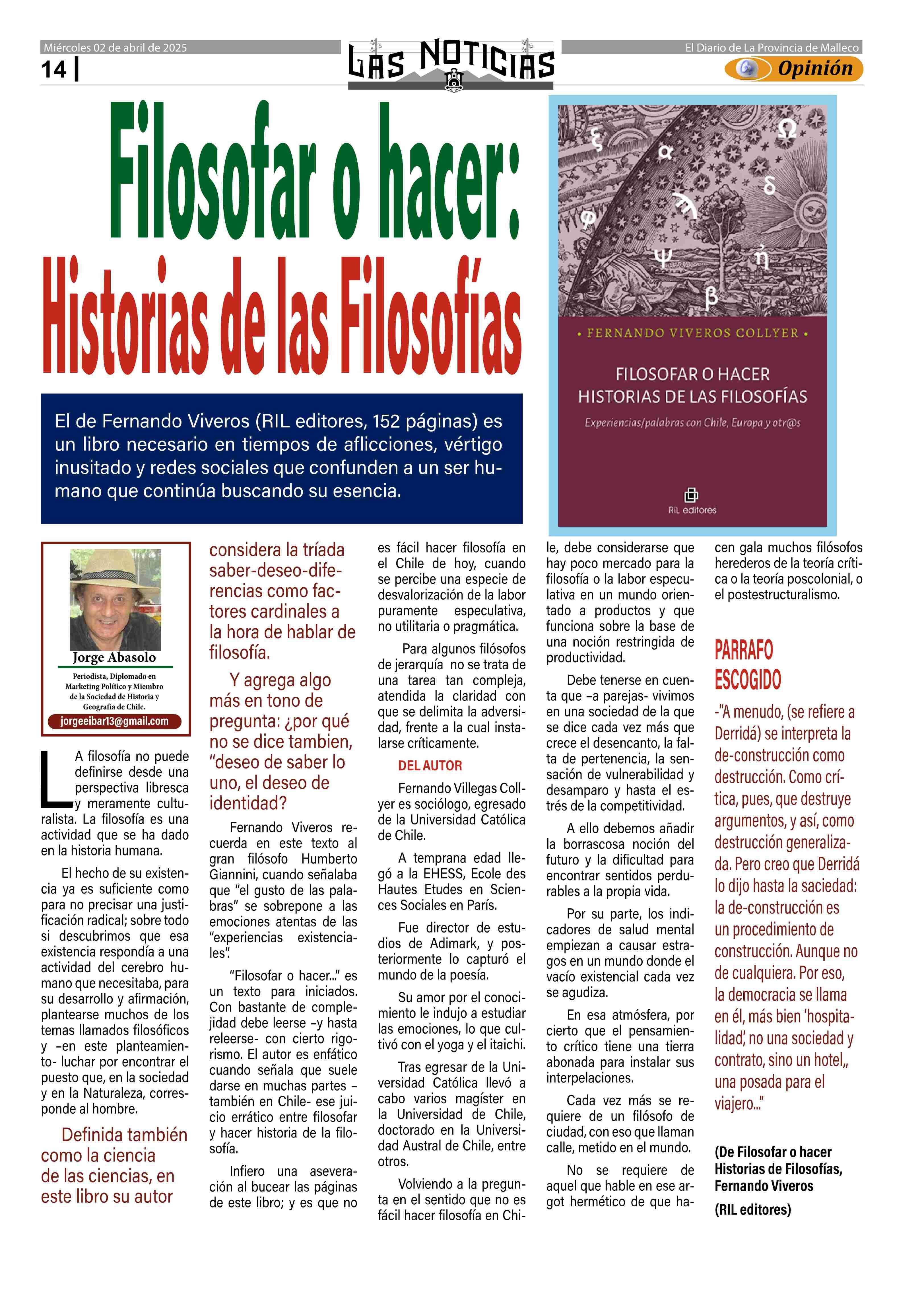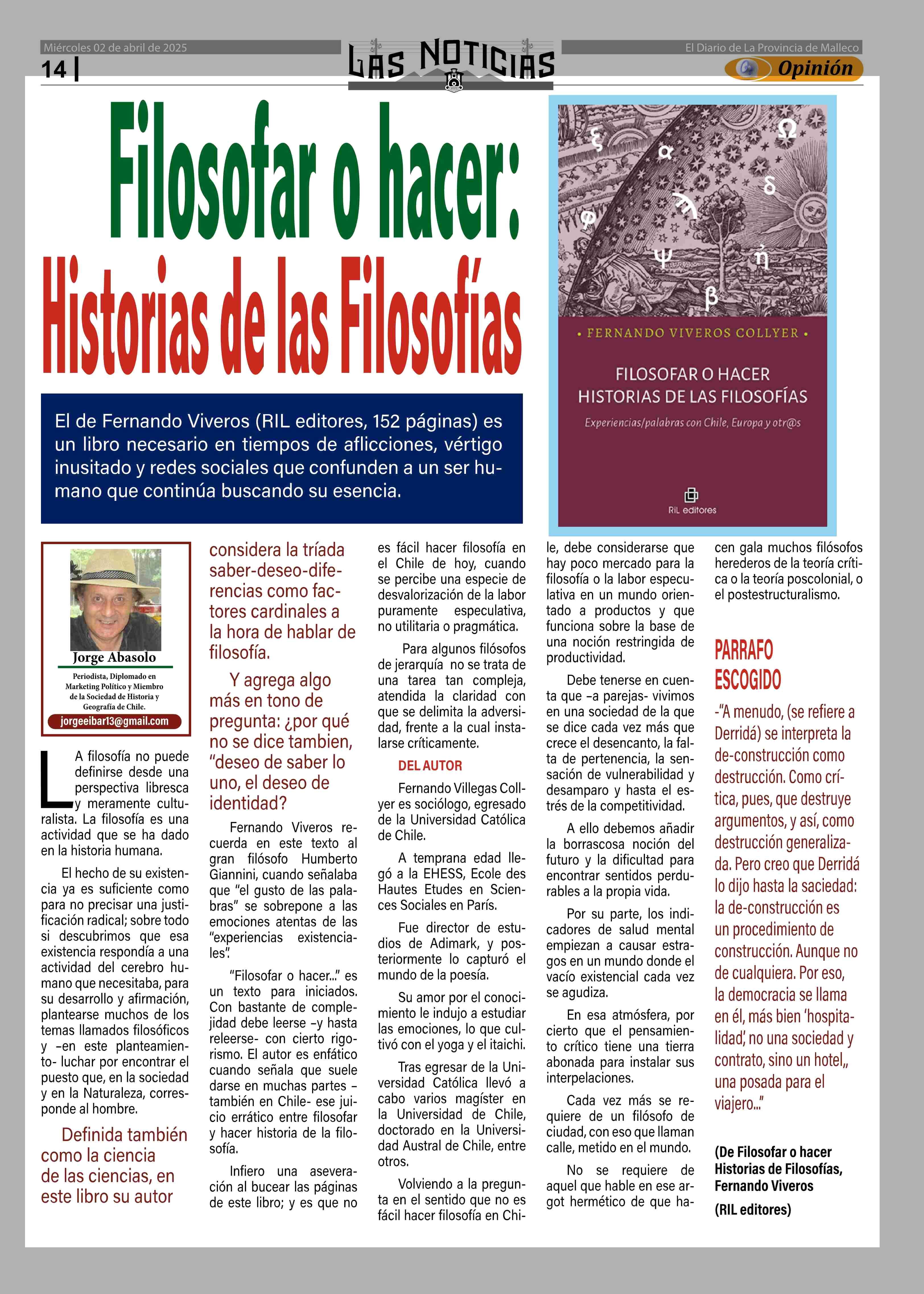 Columnas de Opinión: Filosofar o hacer: Historias de las Filosofías 02-04-2025 Las Noticias |