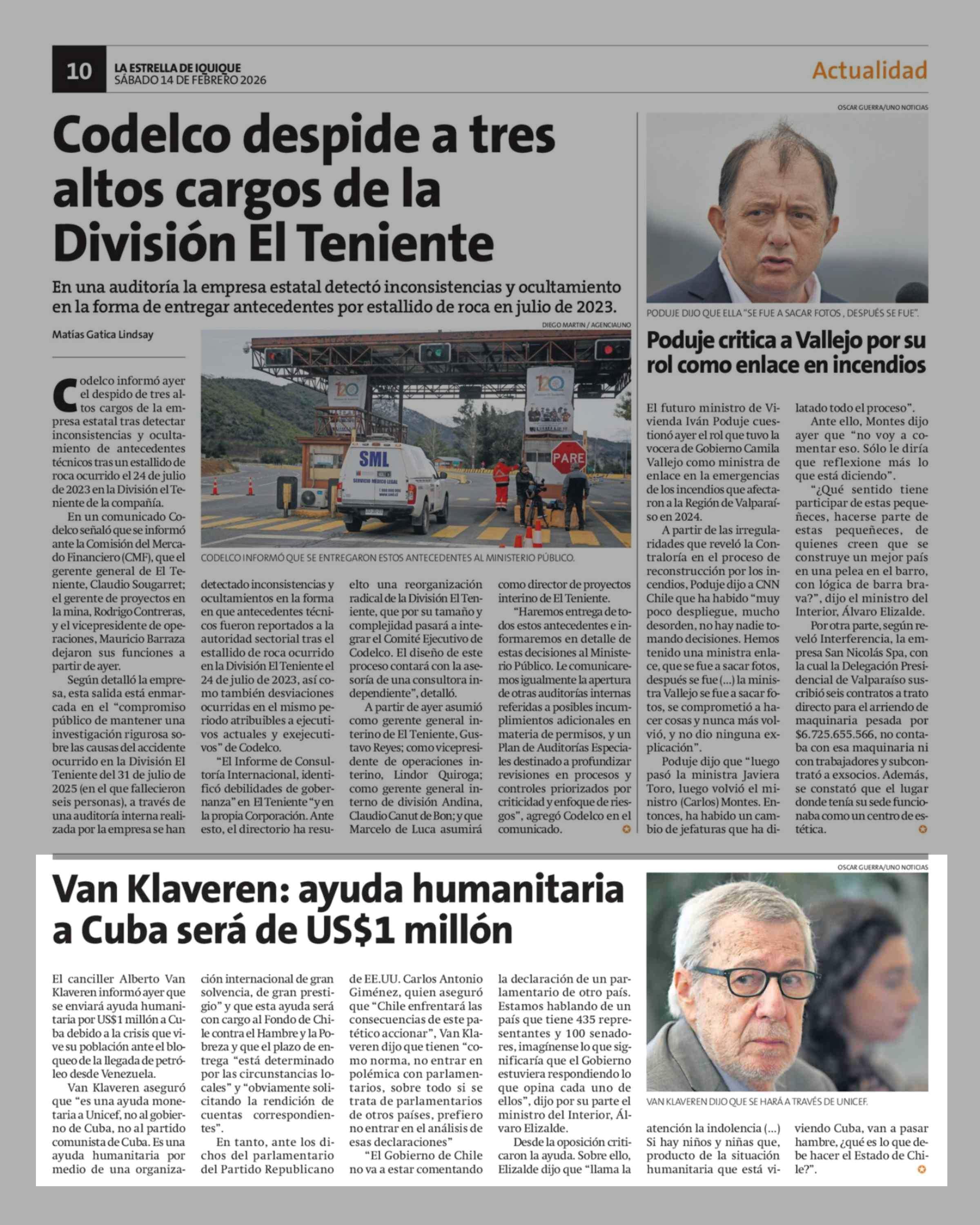 Van Klaveren: ayuda humanitaria a Cuba será de US$1 millón 14-02-2026 La Estrella de Iquique |