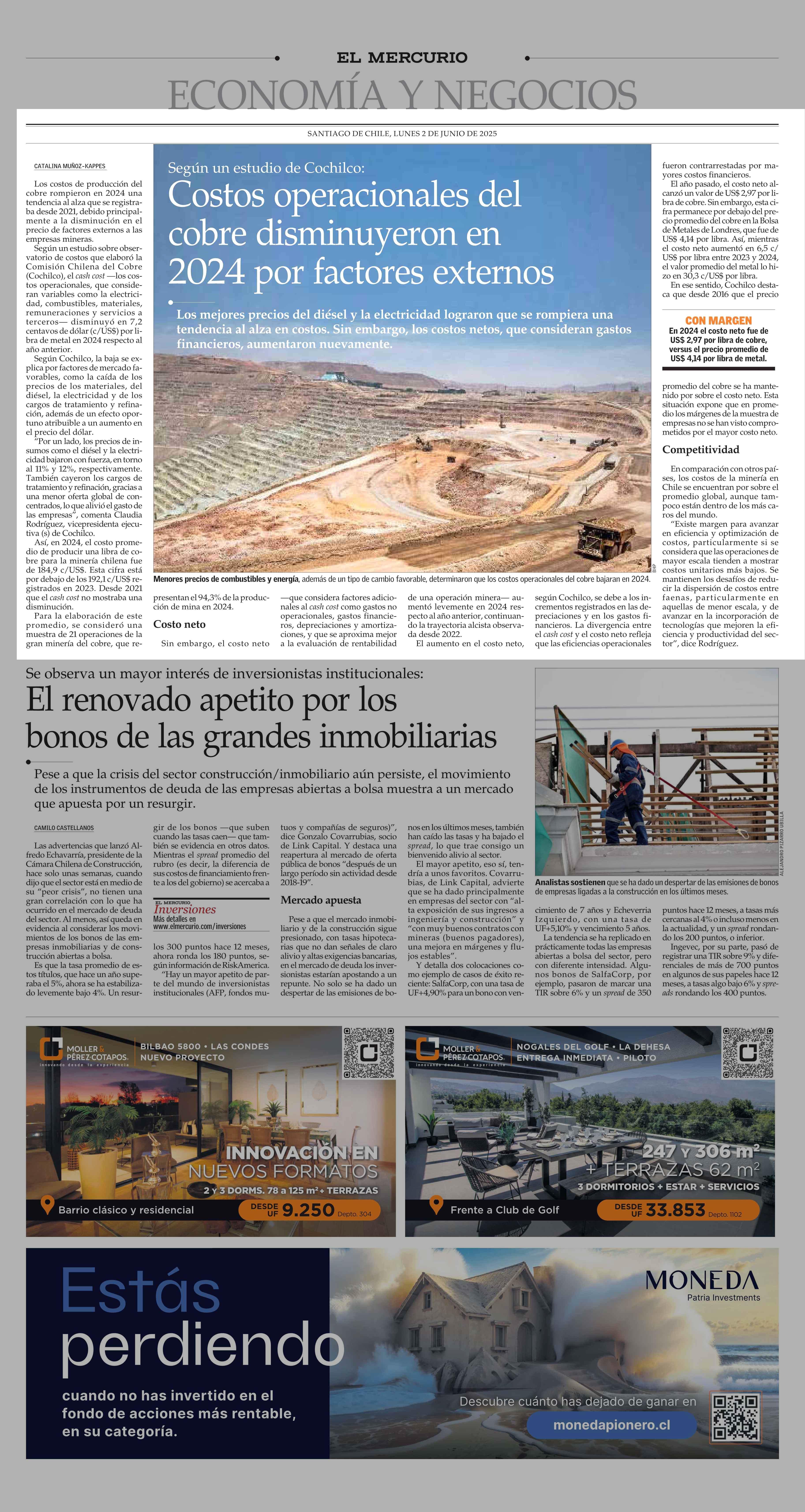 Costos operacionales del cobre disminuyeron en 2024 por factores externos 02-06-2025 El Mercurio |