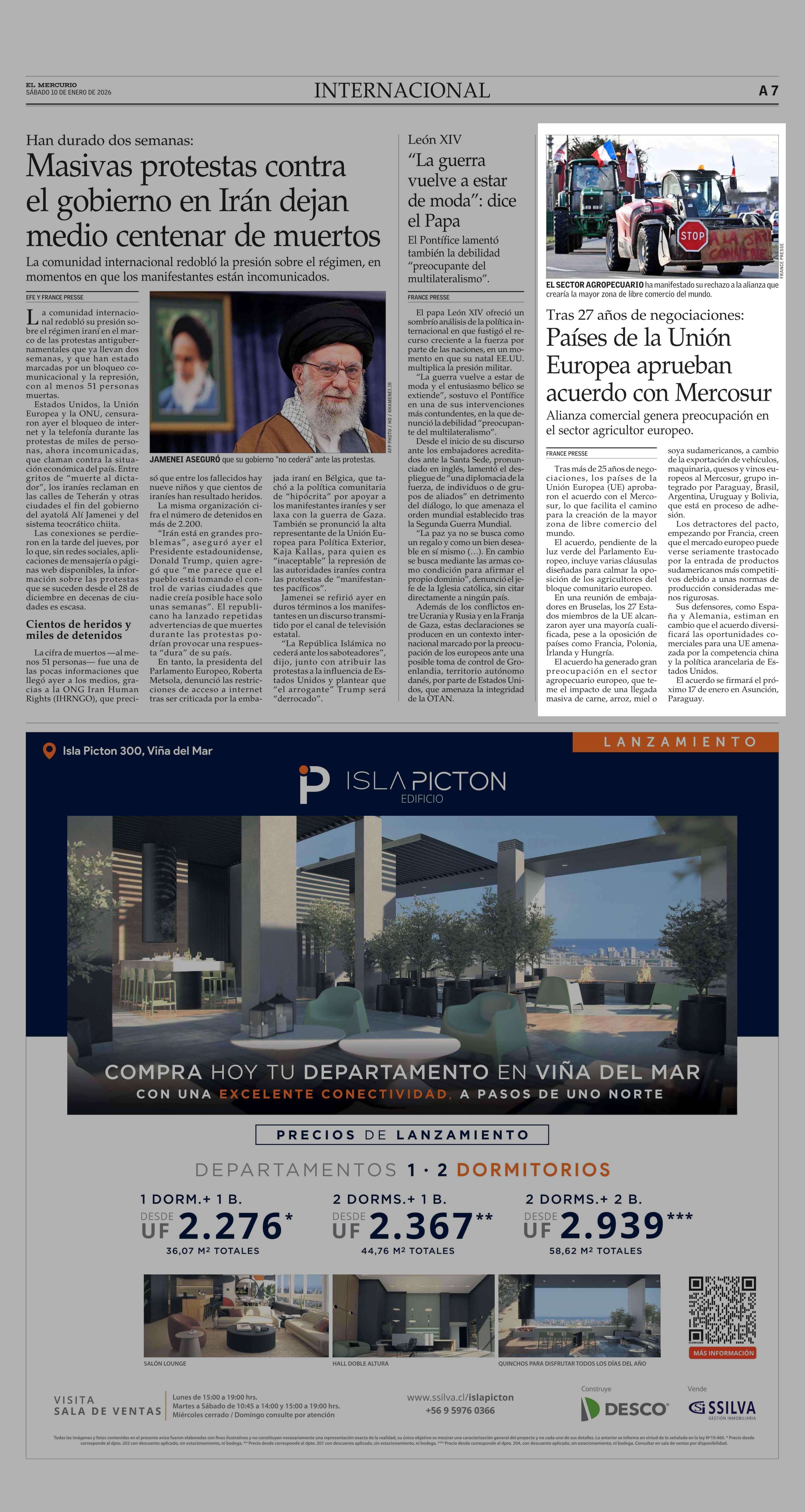Países de la Unión Europea aprueban acuerdo con Mercosur 10-01-2026 El Mercurio |