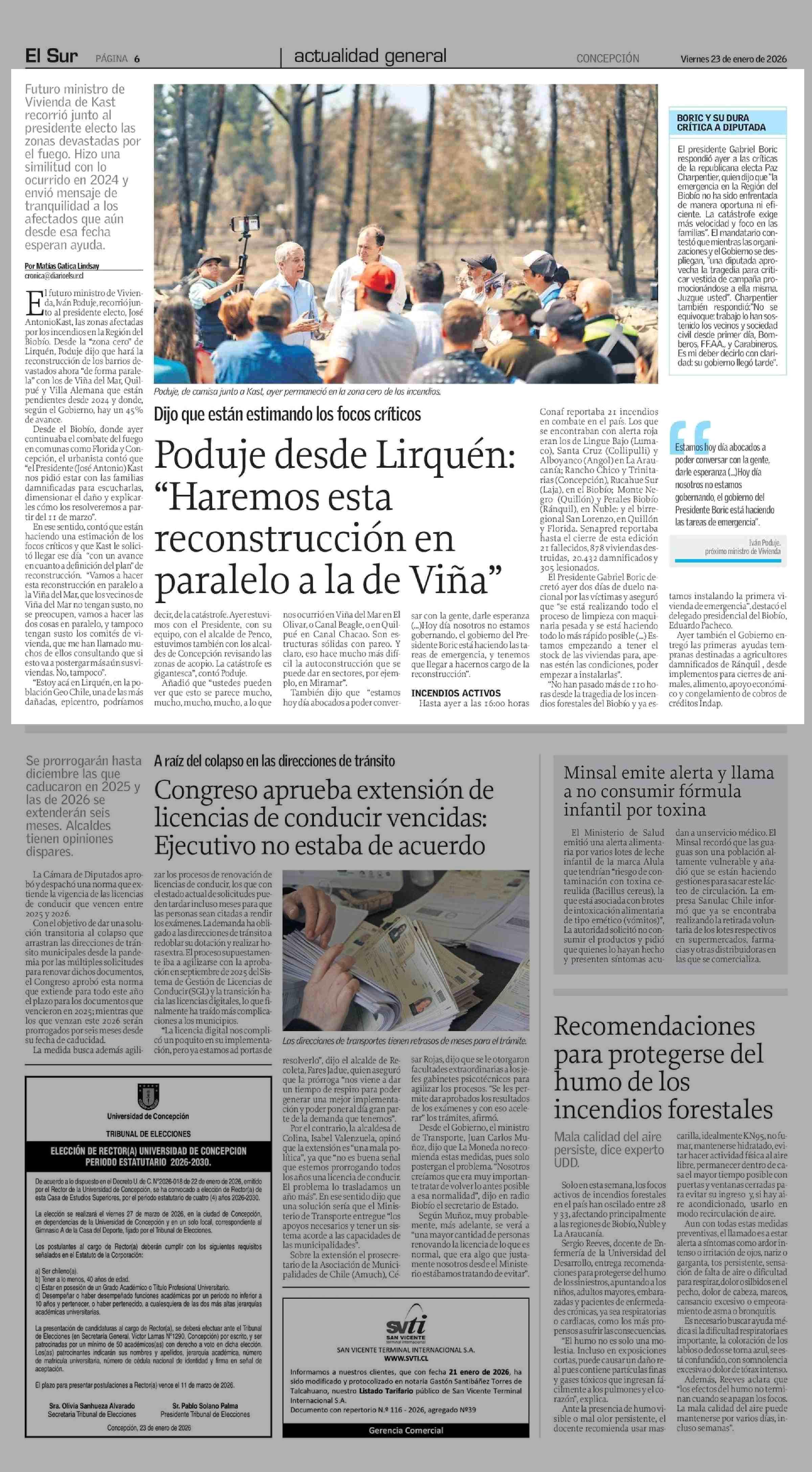 Título: Poduje desde Lirquén: "Haremos esta reconstrucción en paralelo a la de Viña"