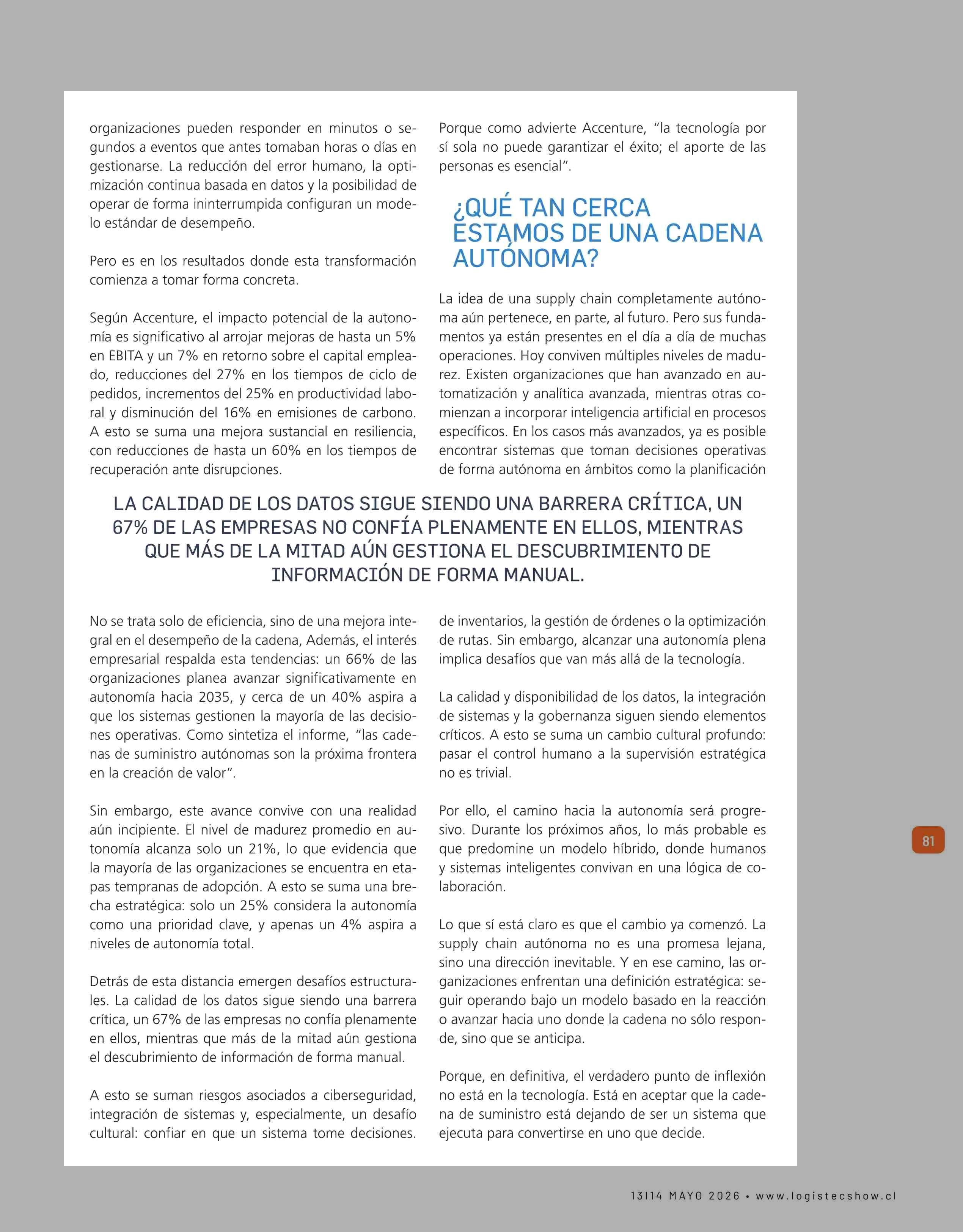 SUPPLY CHAIN AUTÓNOMA: CUANDO LA CADENA DE SUMINISTRO COMIENZA A TOMAR DECISIONES 23-04-2026 Revista Logistec |
