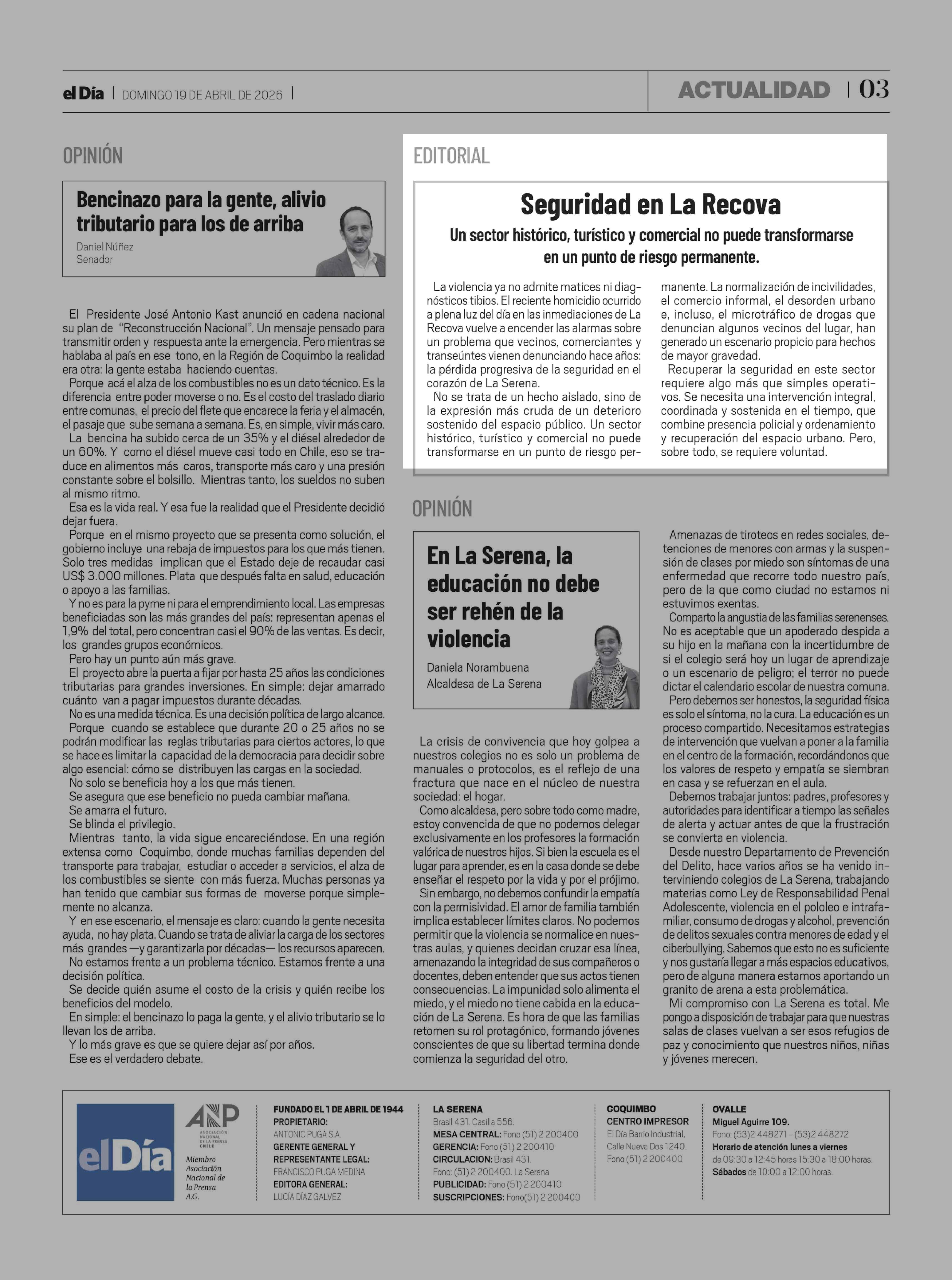 Fecha: 19-04-2026 Sector: Editorial Región: Región de Coquimbo
