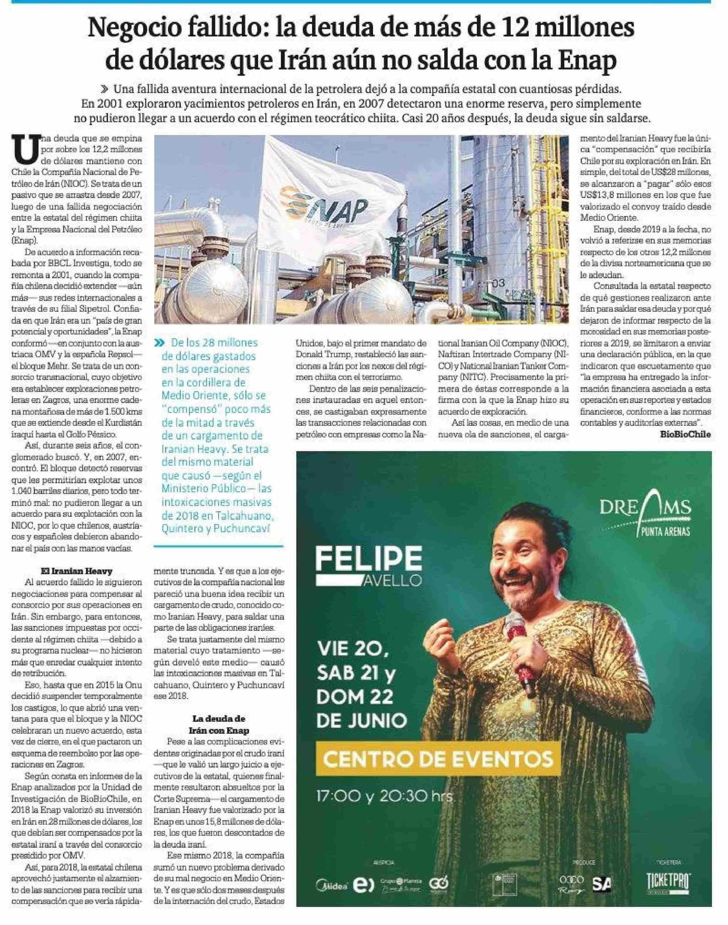 Negocio fallido: la deuda de más de 12 millones de dólares que Irán aún no salda con la Enap 21-06-2025 La Prensa Austral |