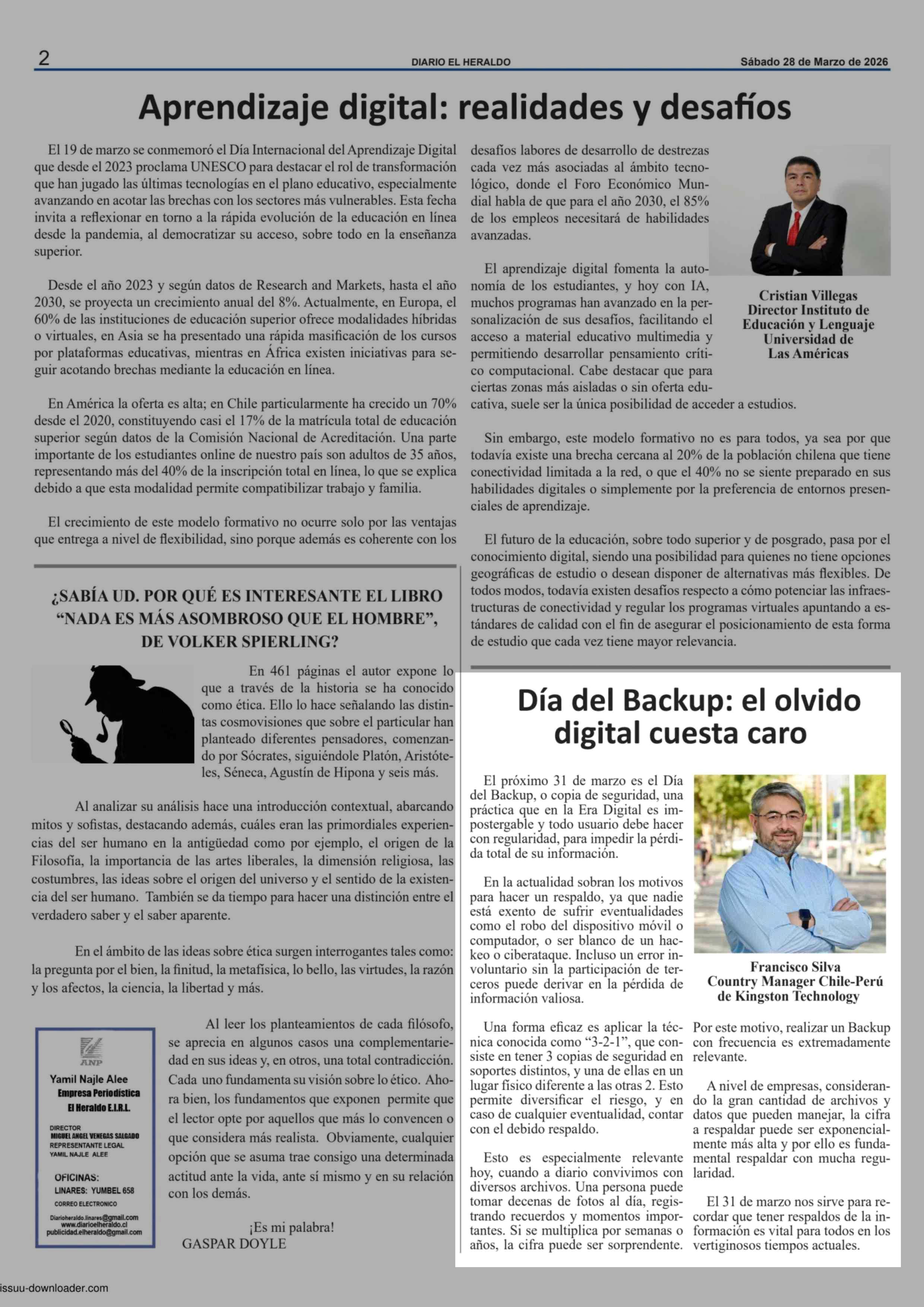 Título: Columnas de Opinión: Día del Backup: el olvido digital cuesta caro