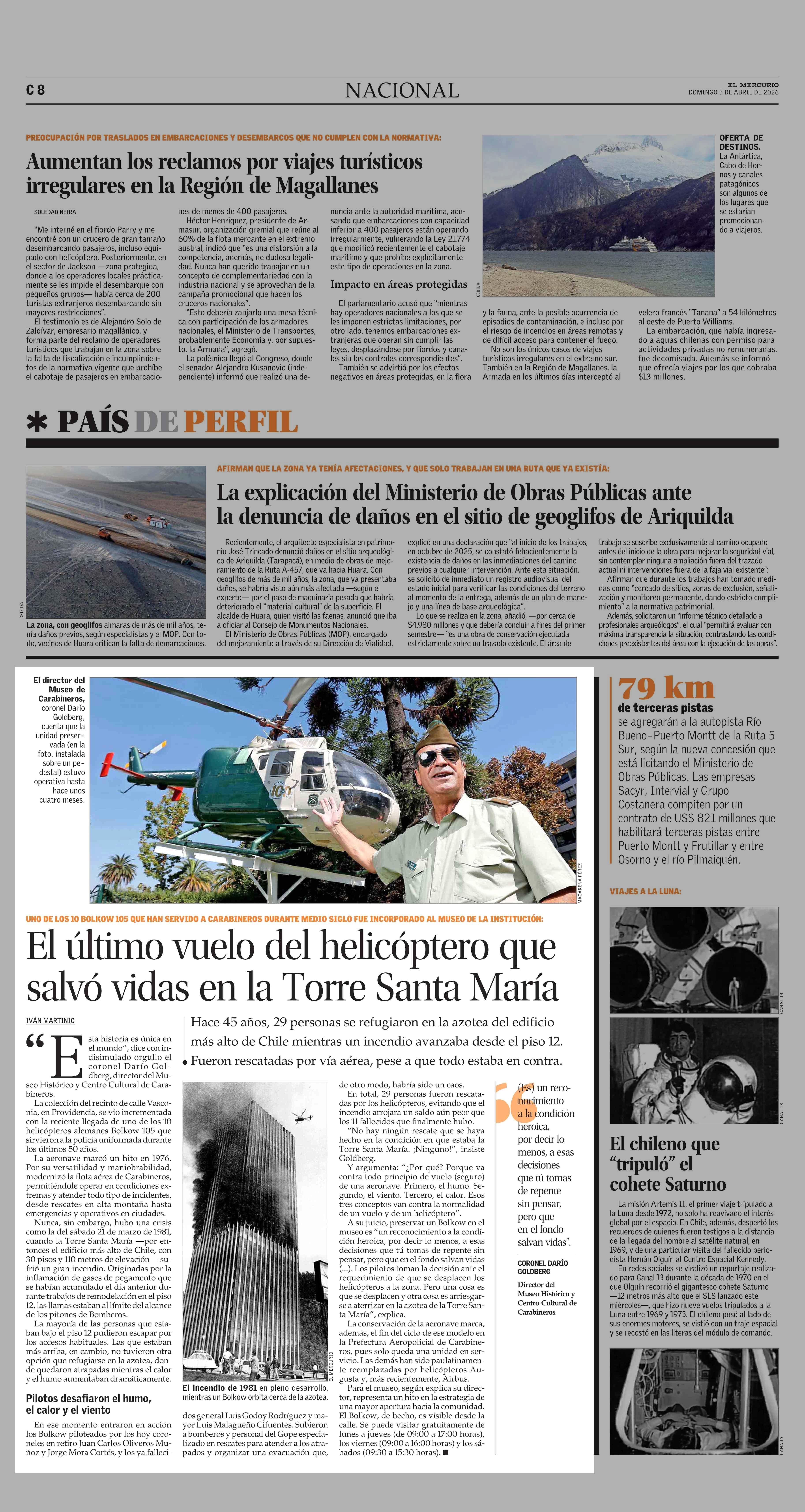 El último vuelo del helicóptero que salvó vidas en la Torre Santa María 05-04-2026 El Mercurio |