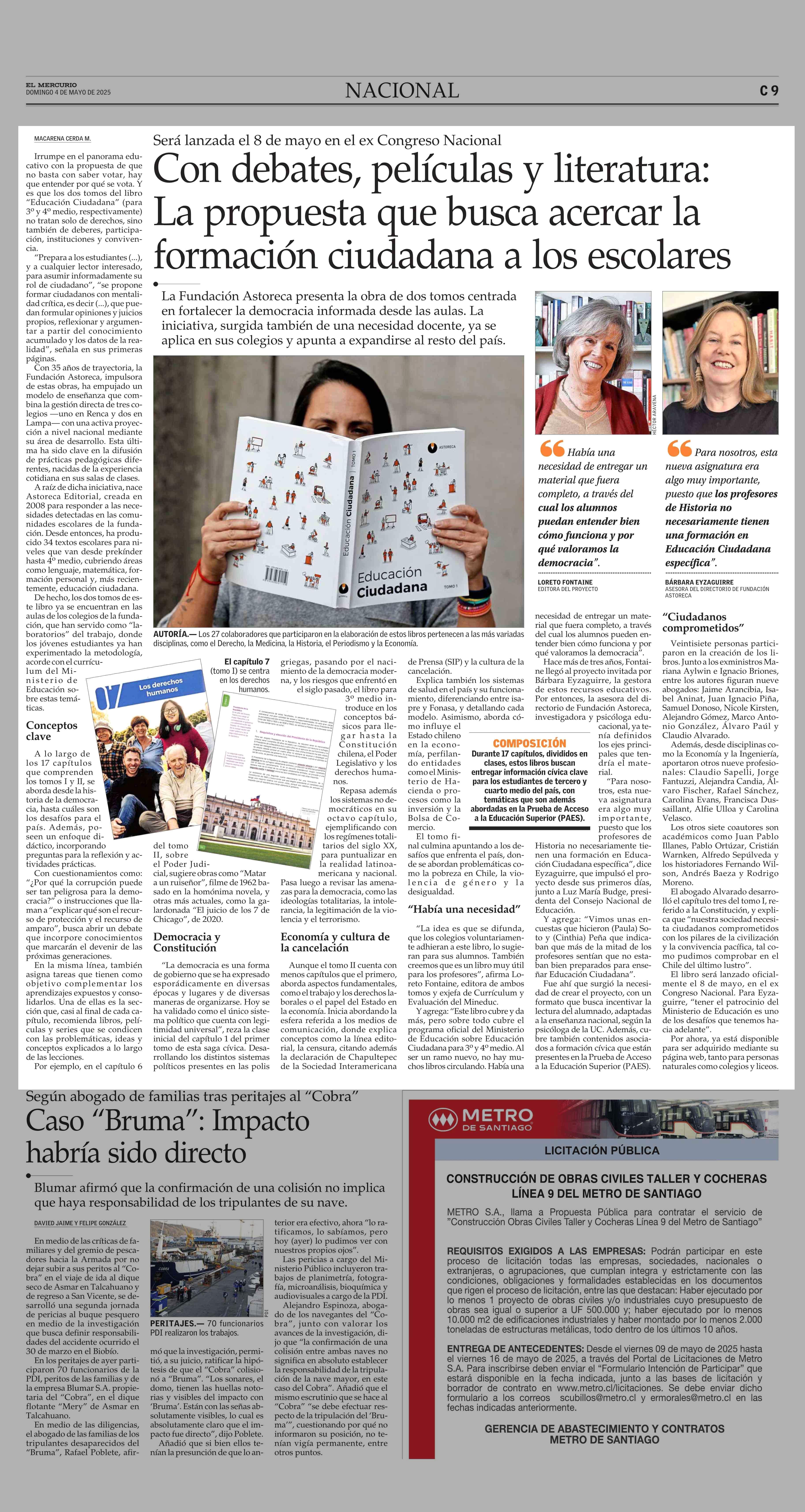 Con debates, películas y literatura: La propuesta que busca acercar la formación ciudadana a los escolares 04-05-2025 El Mercurio |