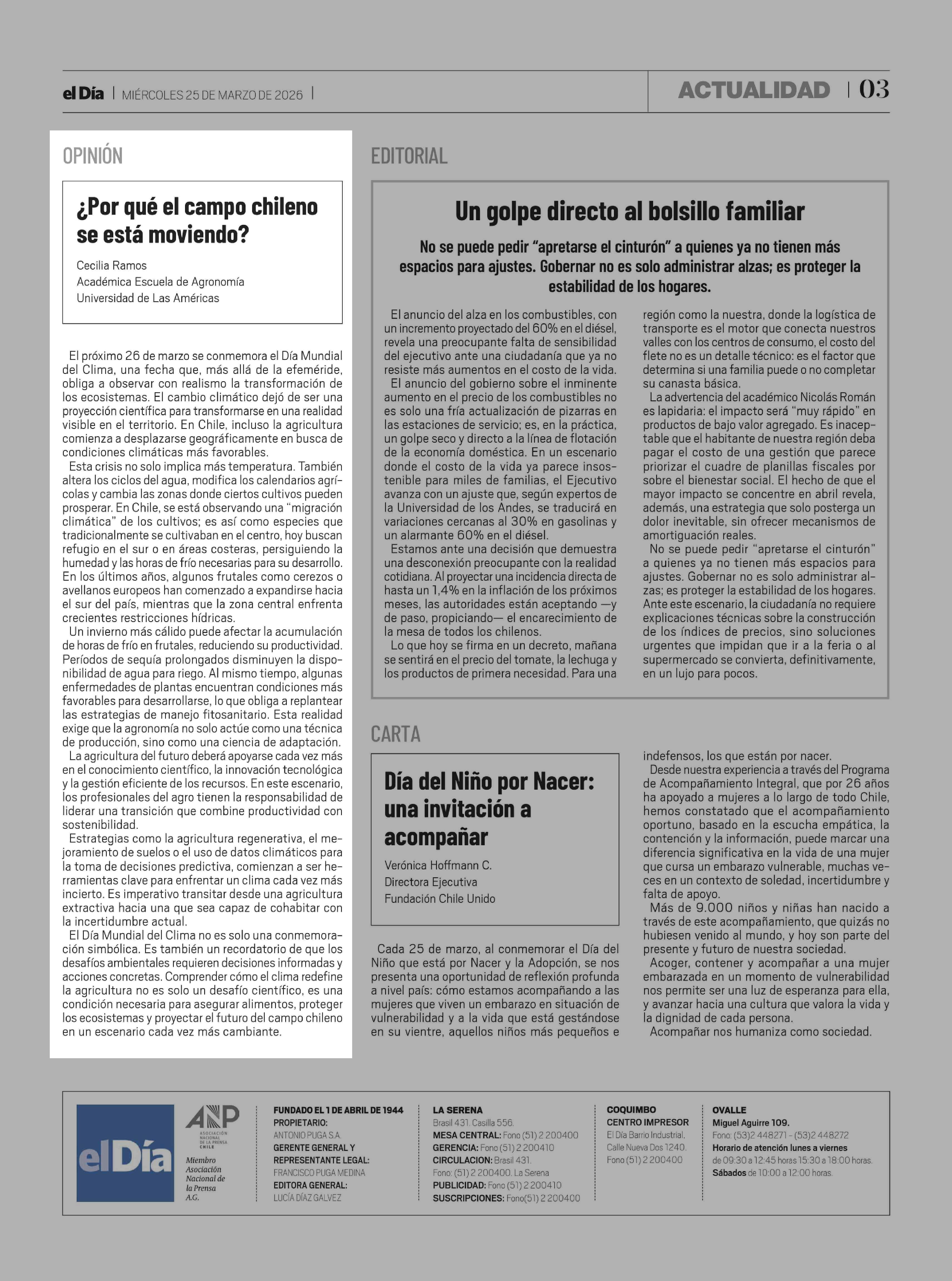Columnas de Opinión: ¿Por qué el campo chileno se está moviendo? 25-03-2026 El Día |