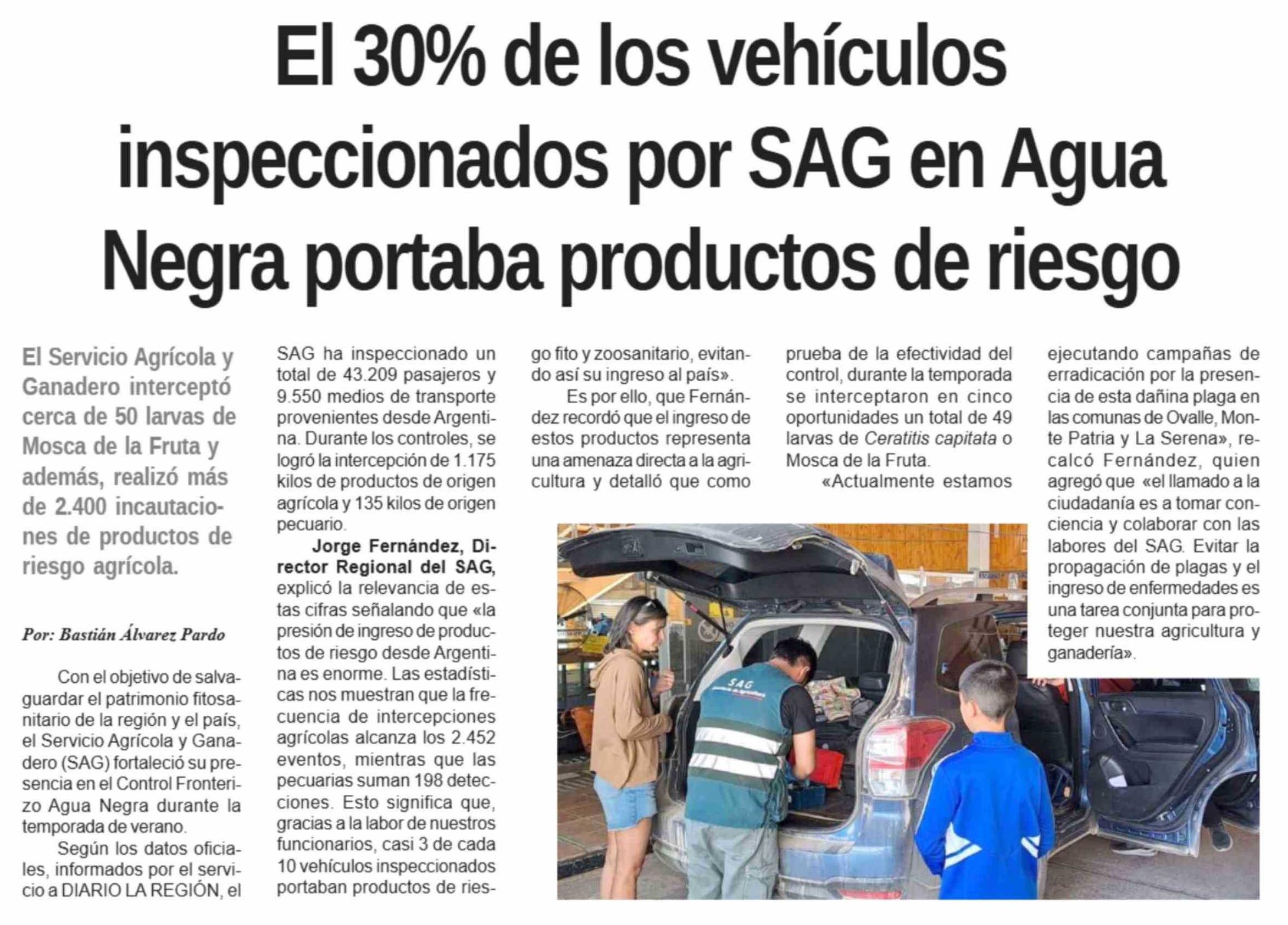 Título: El 30% de los vehículos inspeccionados por SAG en Agua Negra portaba productos de riesgo