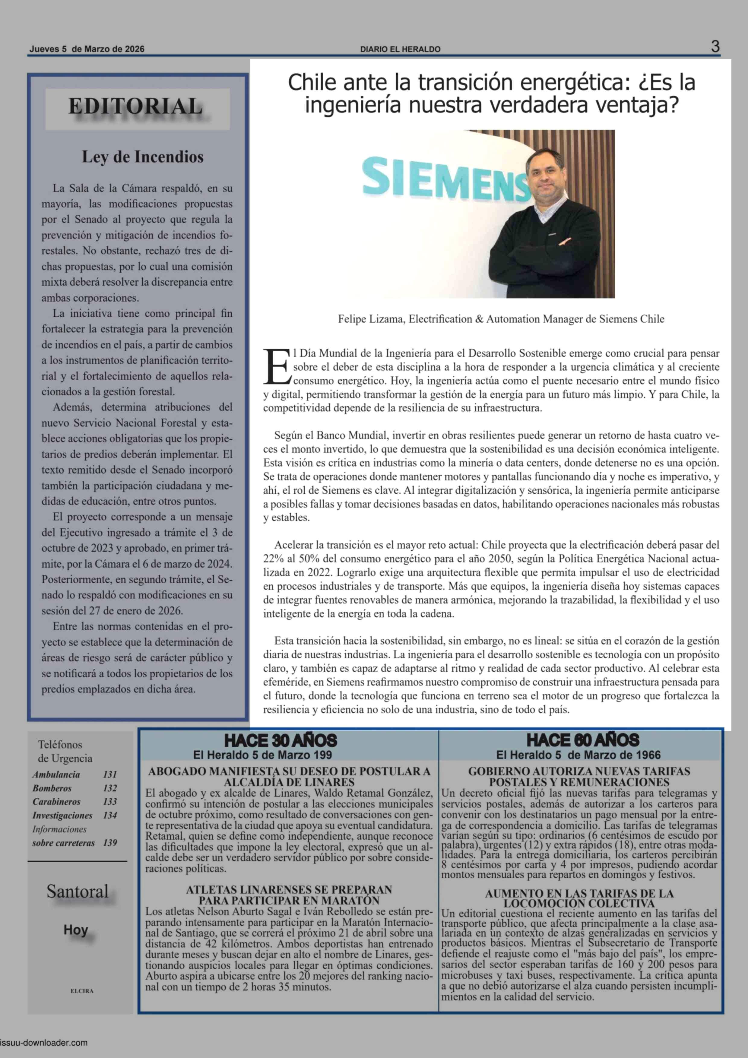 Columnas de Opinión: Chile ante la transición energética: ¿ Es la ingeniería nuestra verdadera ventaja? 05-03-2026 El Heraldo |