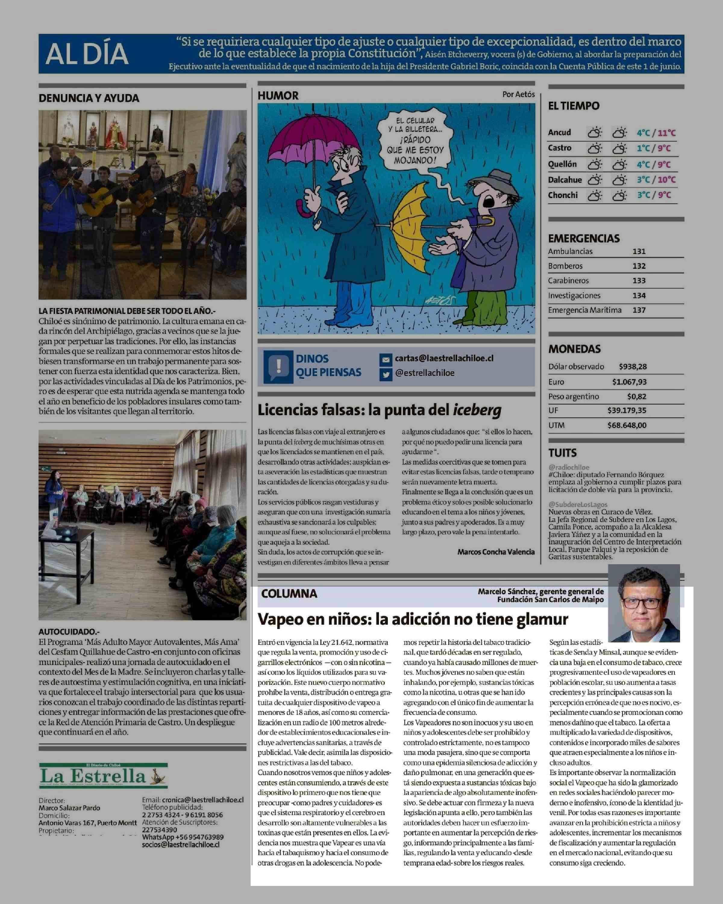 COLUMNAS DE OPINIÓN: la adicción no tiene glamur 27-05-2025 La Estrella de Chiloé |