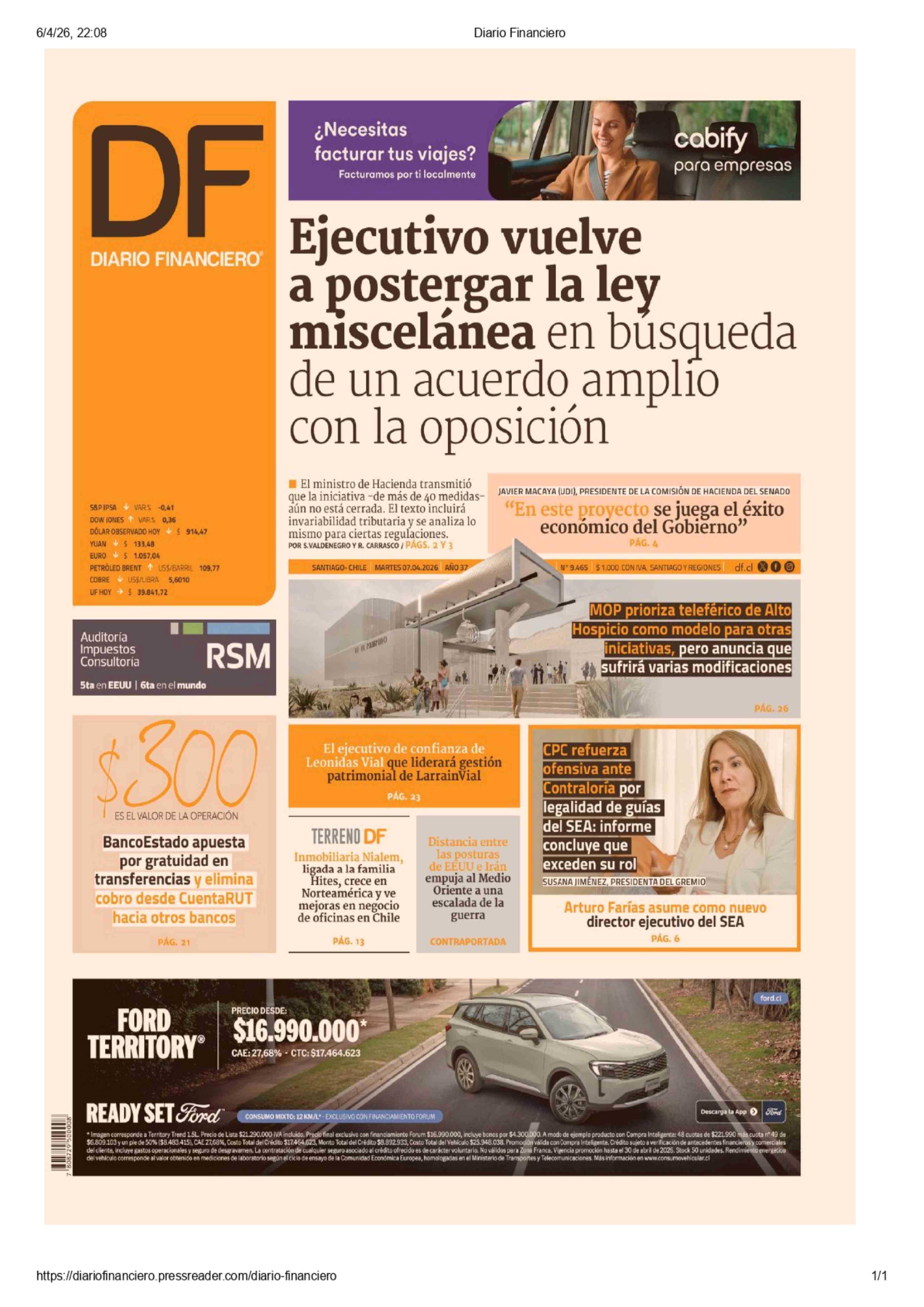 Título: PORTADA DIARIO FINANCIERO CHILE